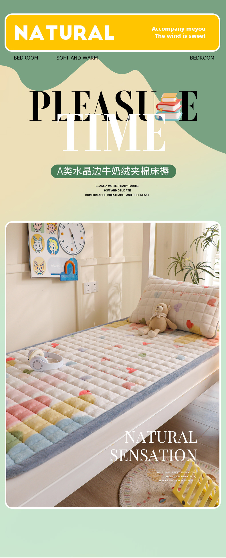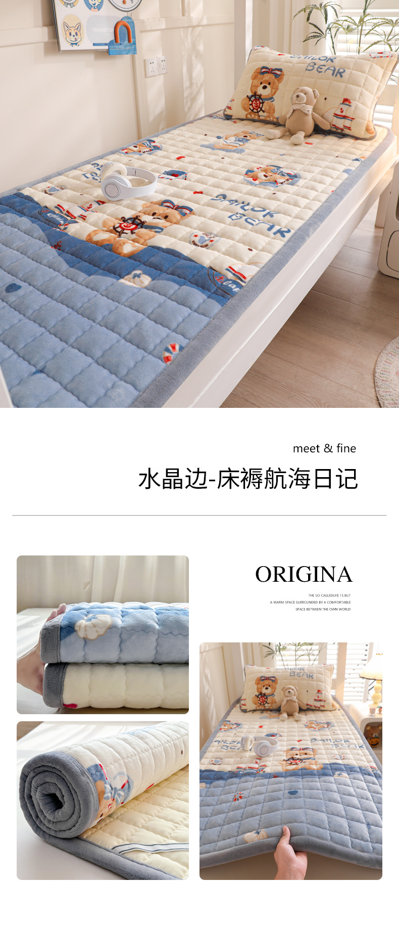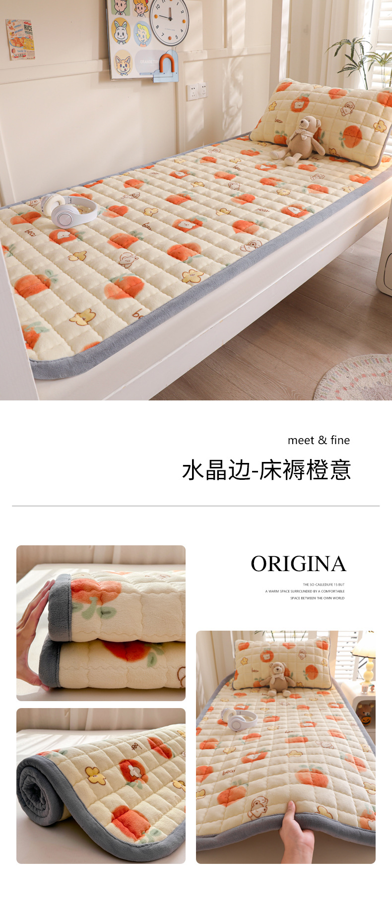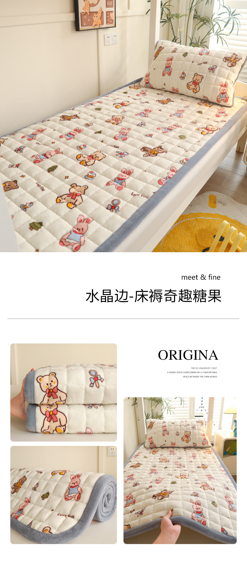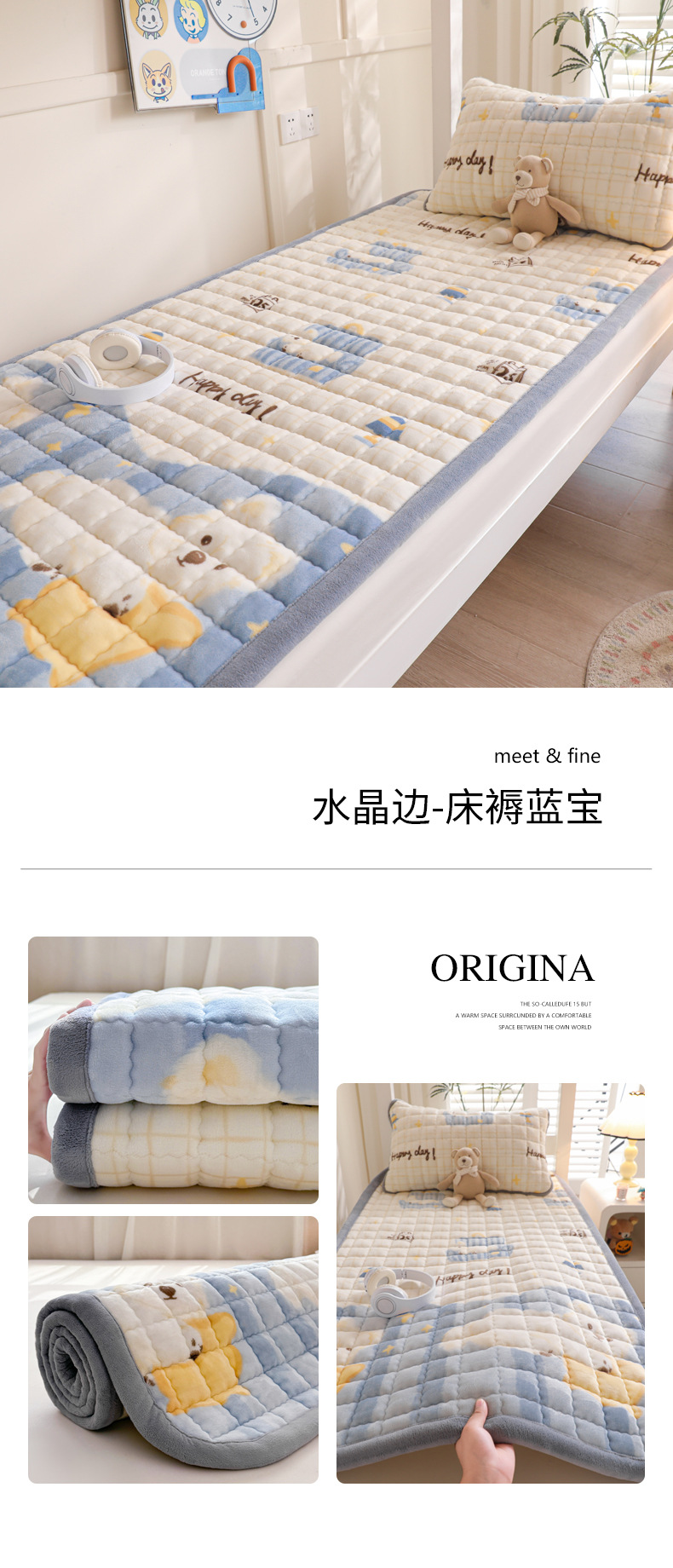 • 싱글 매트리스 150*200 [두꺼운 밀크 벨벳, 누빔 충전재, 넓어진 모서리]