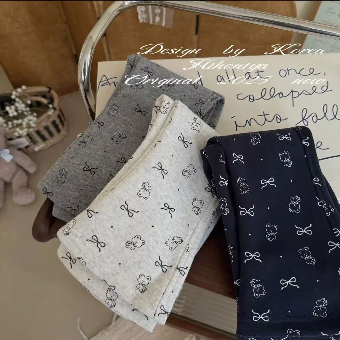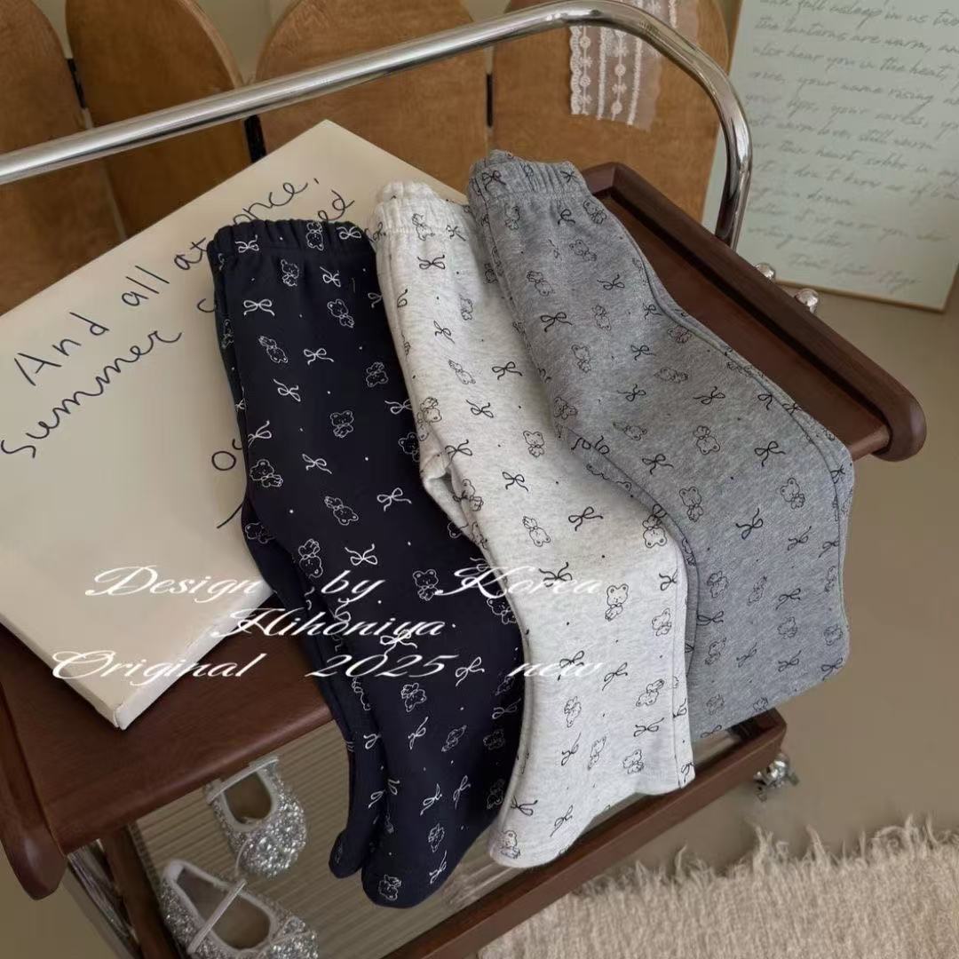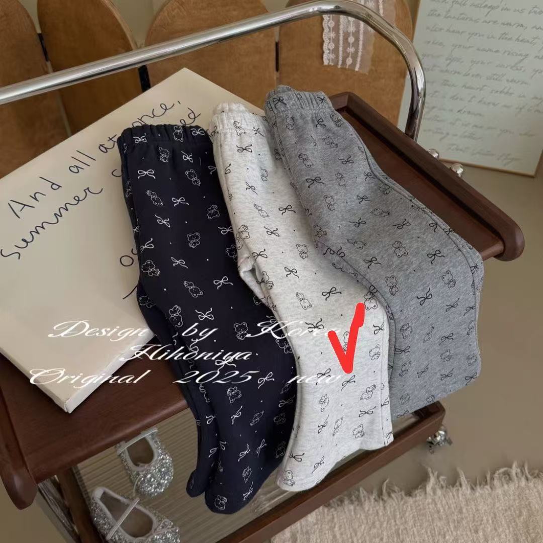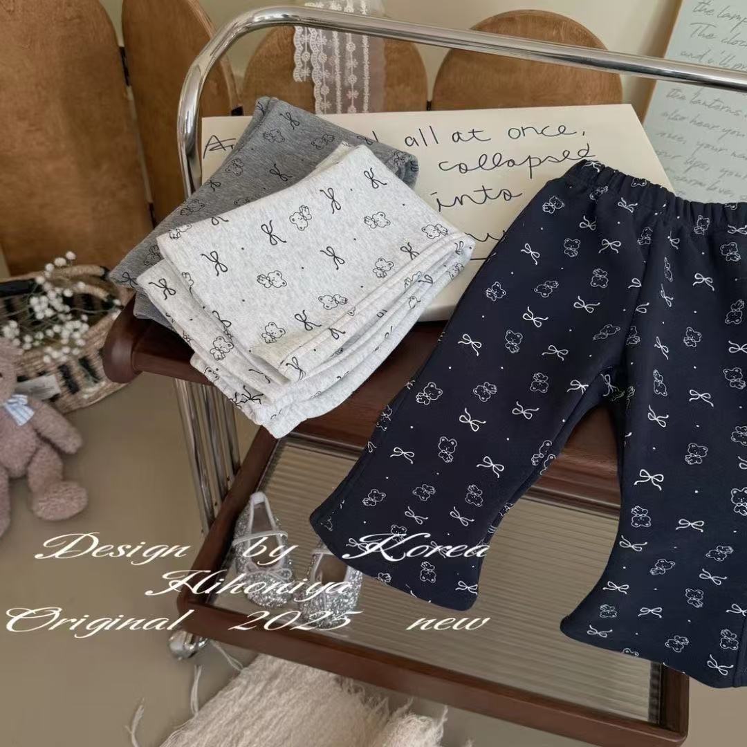 소녀의 봄 2025 새로운 도착 바지 어린이 봄과 가을 서양 스타일 캐주얼 바지 유치원 귀여운 인쇄 된 플레어 바지 트렌디스토어 가기