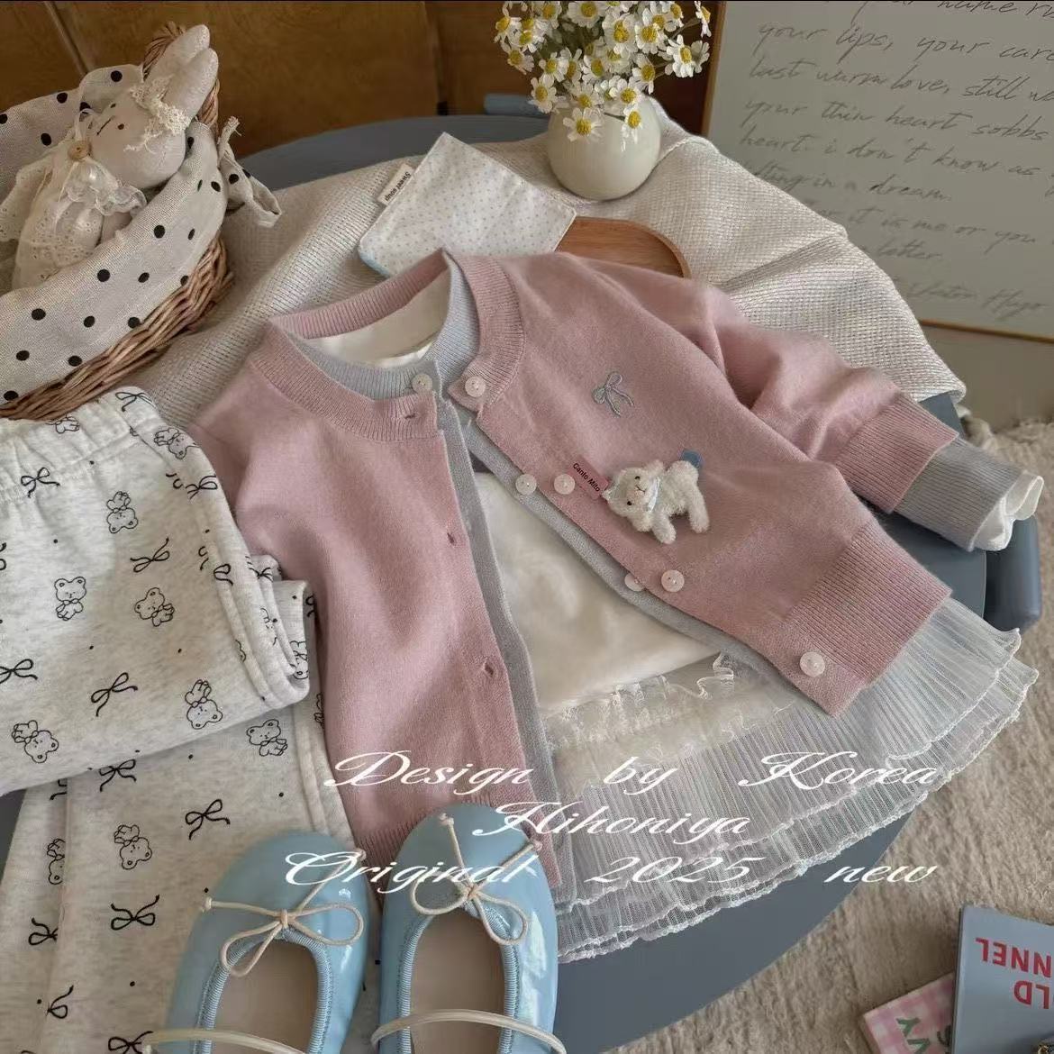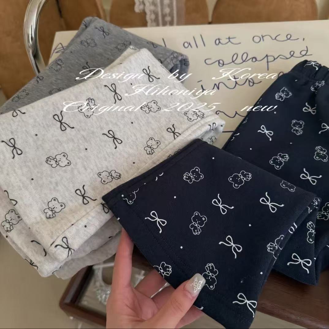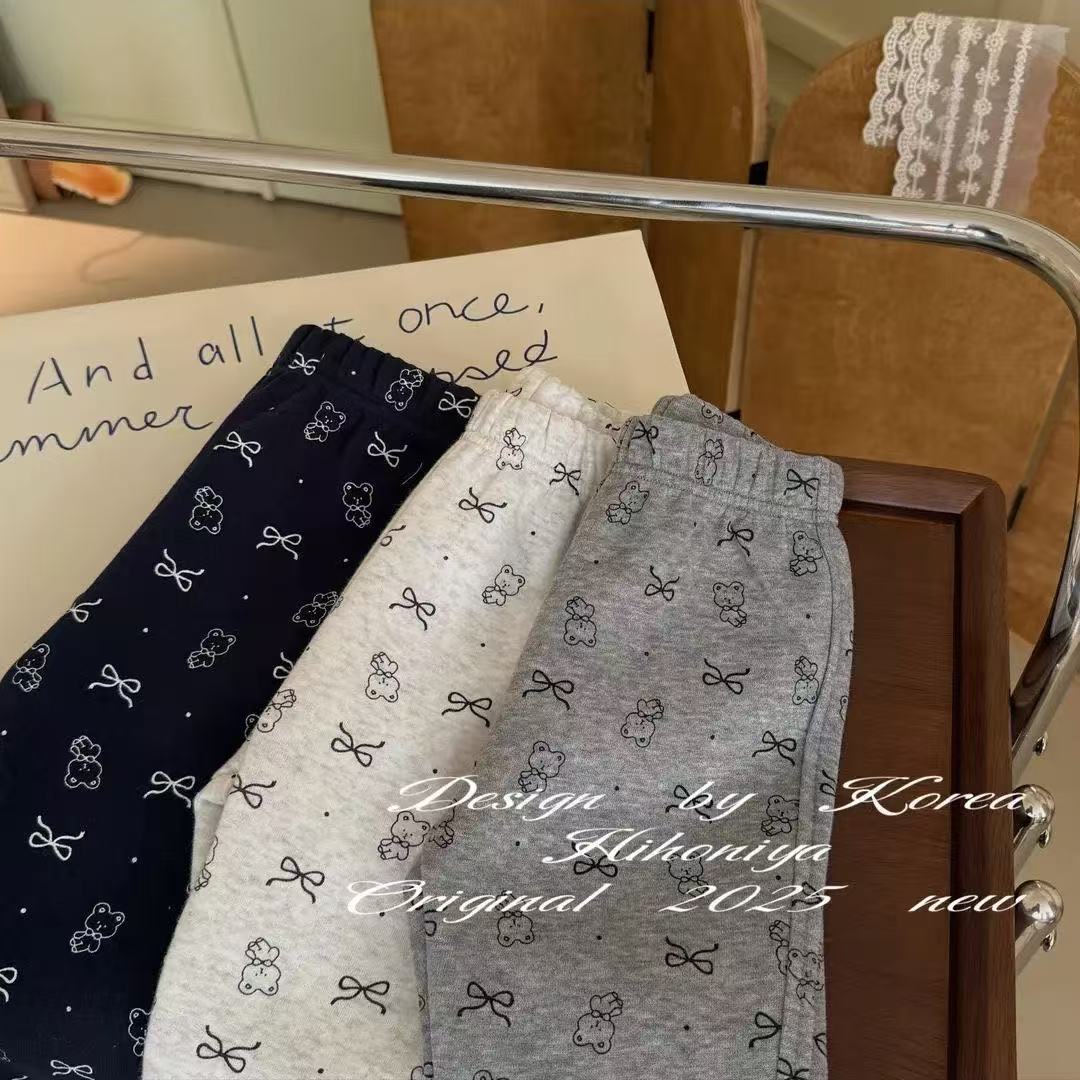 소녀의 봄 2025 새로운 도착 바지 어린이 봄과 가을 서양 스타일 캐주얼 바지 유치원 귀여운 인쇄 된 플레어 바지 트렌디스토어 가기