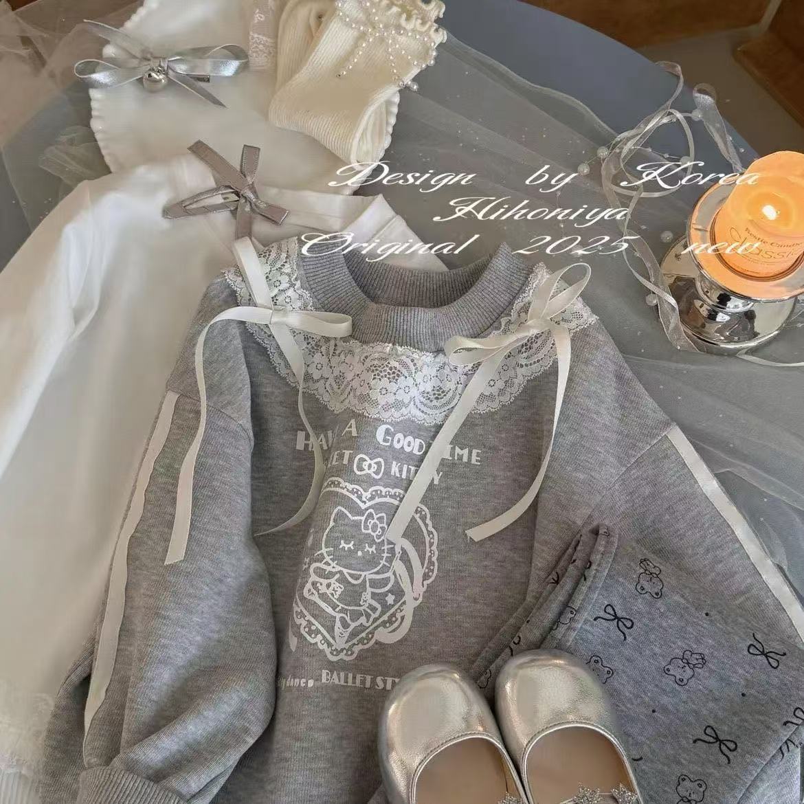 소녀의 봄 2025 새로운 도착 바지 어린이 봄과 가을 서양 스타일 캐주얼 바지 유치원 귀여운 인쇄 된 플레어 바지 트렌디