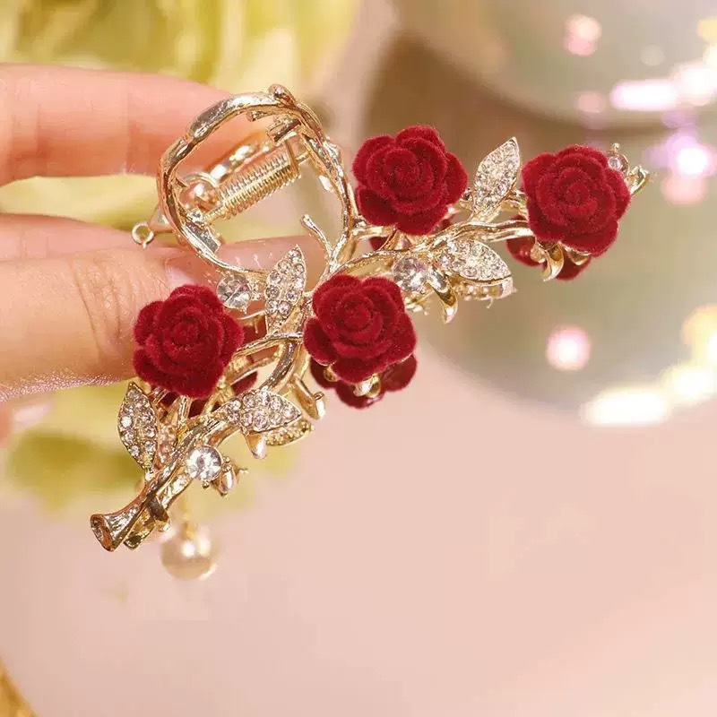 클래식 술 벨벳 연꽃 잎 큰 잡아 클립 술 큰 잡아 클립 클립 로즈 꽃 머리 머리 달콤한 우아한스토어 가기