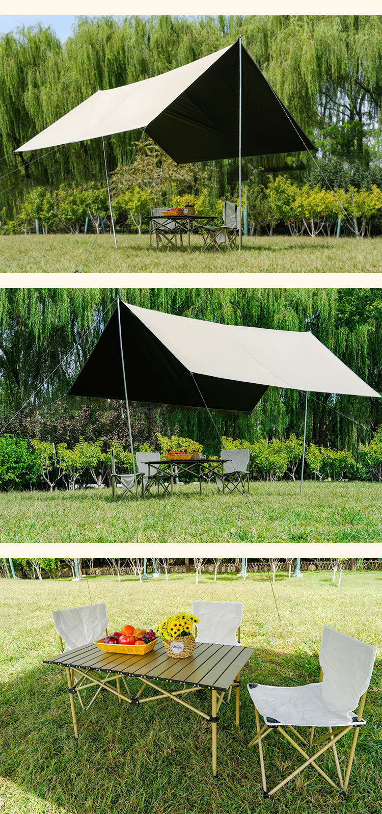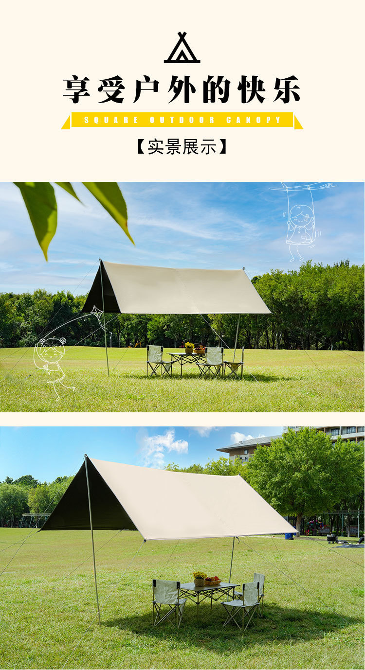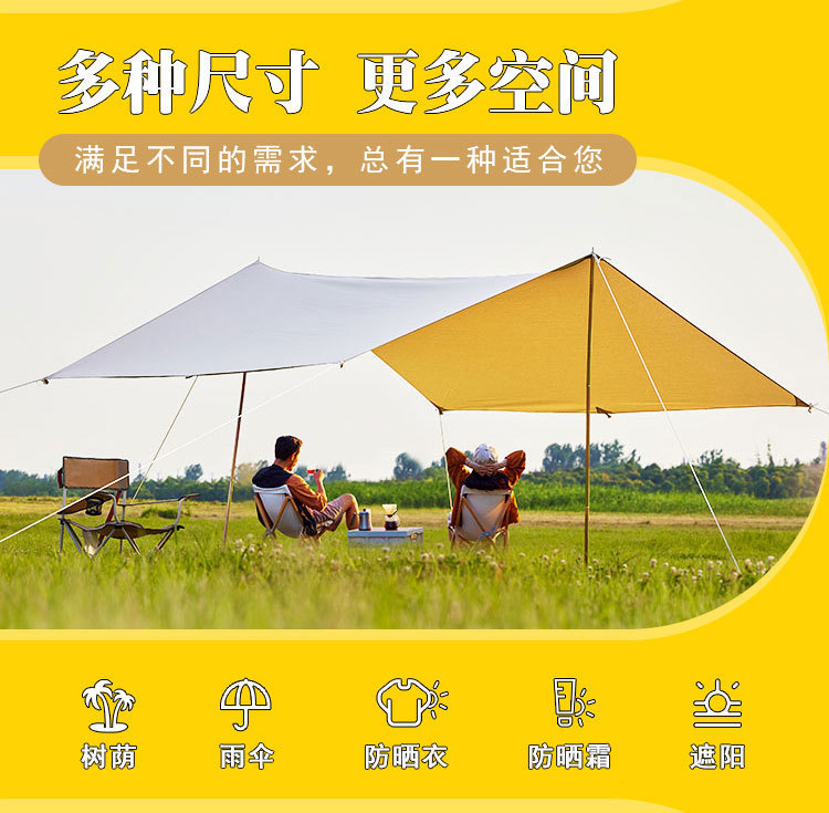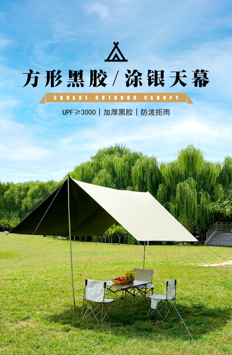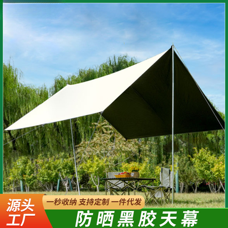 캐노피 야외 캠핑 차양 휴대용 검은 고무 자외선 차단제 캠핑 실버 고무 비 텐트 피크닉 따뜻한 캐노피스토어 가기