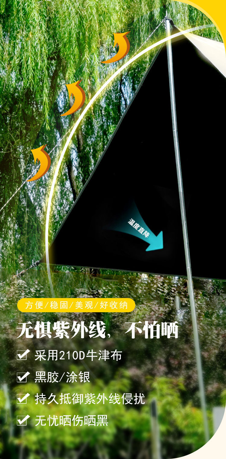 캐노피 야외 캠핑 차양 휴대용 검은 고무 자외선 차단제 캠핑 실버 고무 비 텐트 피크닉 따뜻한 캐노피