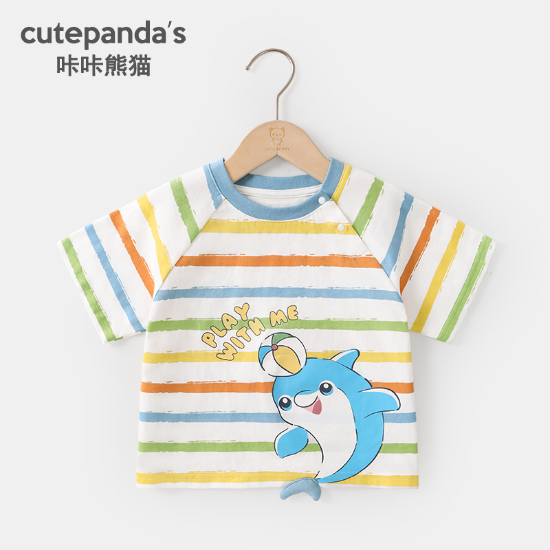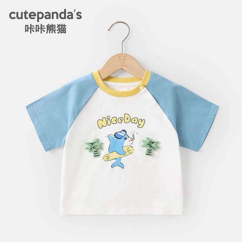 카카 팬더 보이즈 반팔 티셔츠 걸스 여름 착용 아기 캐주얼 반소매 어린이 여름 탑 아기 아동복스토어 가기