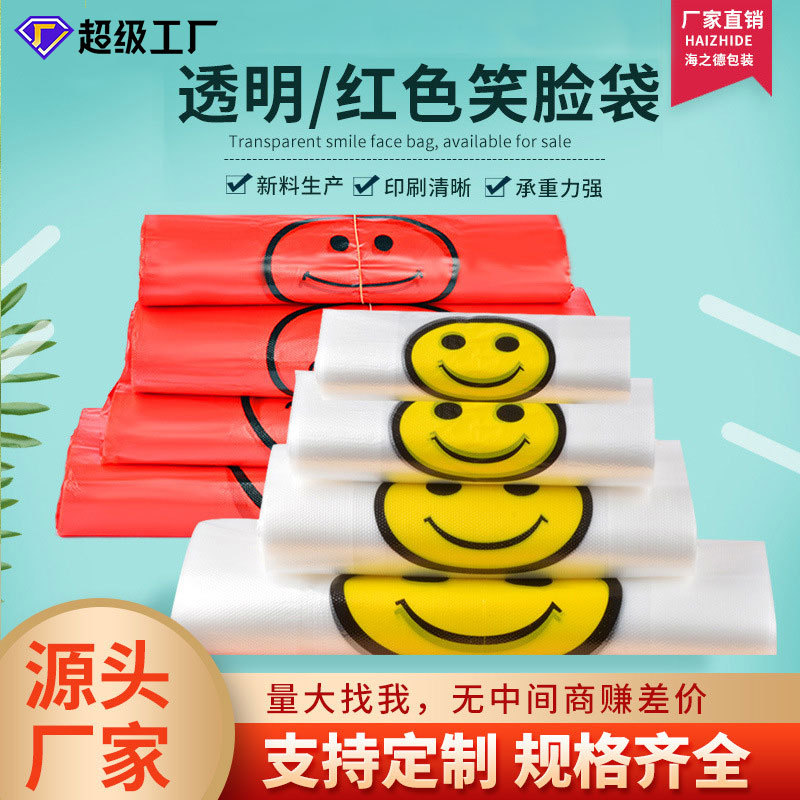 투명 웃는 얼굴 비닐 봉투 도매 슈퍼마켓 쇼핑 과일 포장 조끼 가방 휴대용 포장 가방 편리한 가방