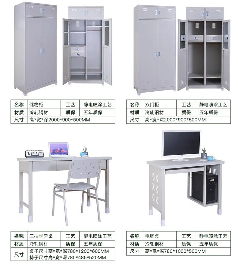 14가지 모델의 이층 철제 침대, 상하층 침대, 직원 기숙사 캐비닛, 학습 테이블, 수납 공간, 모던하고 심플한 디자인