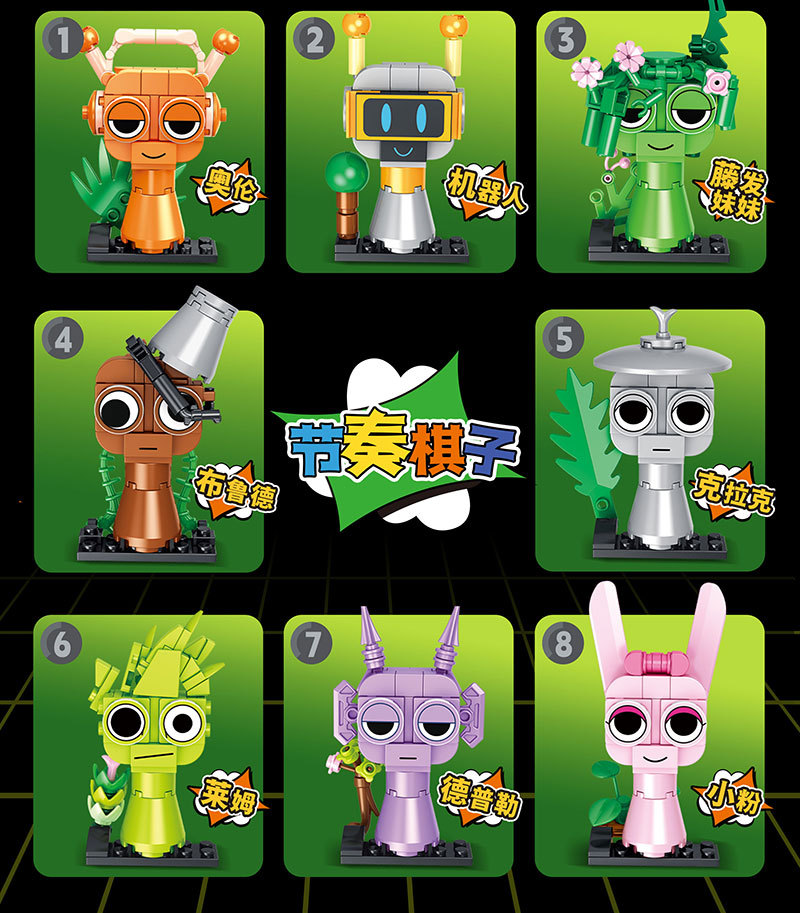 10090 리듬 체스맨 전체 세트 사이먼 뮤직 박스 노트 게임 소년의 빌딩 블록 조립 장난감 6