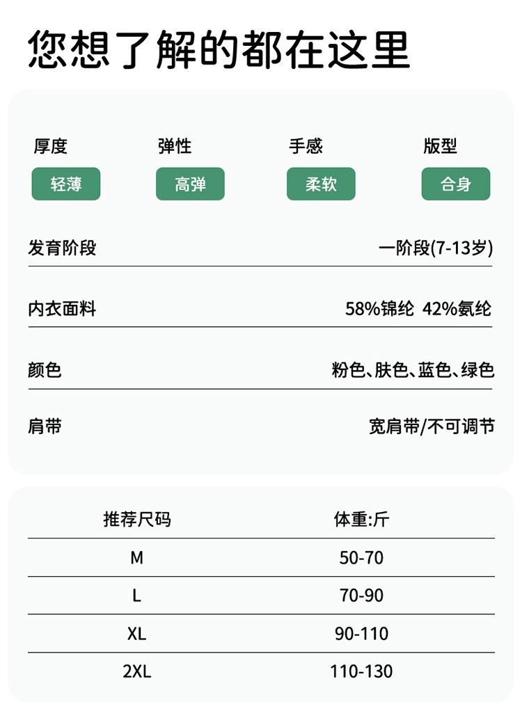 여아 속옷 개발 조끼 10 살 초등학교 중학생 통기성 통합고양이 내구패드 봄 · 여름 가늘게