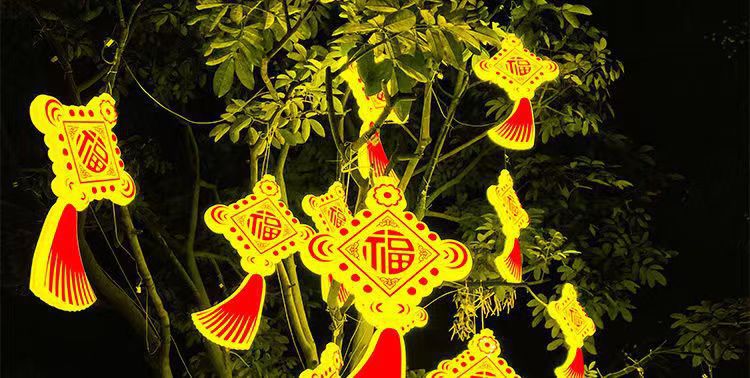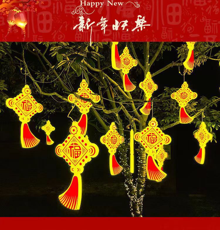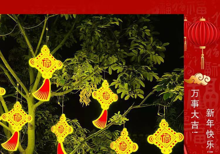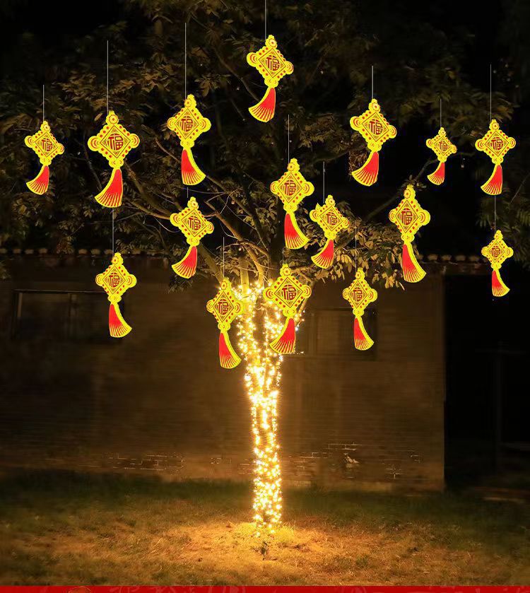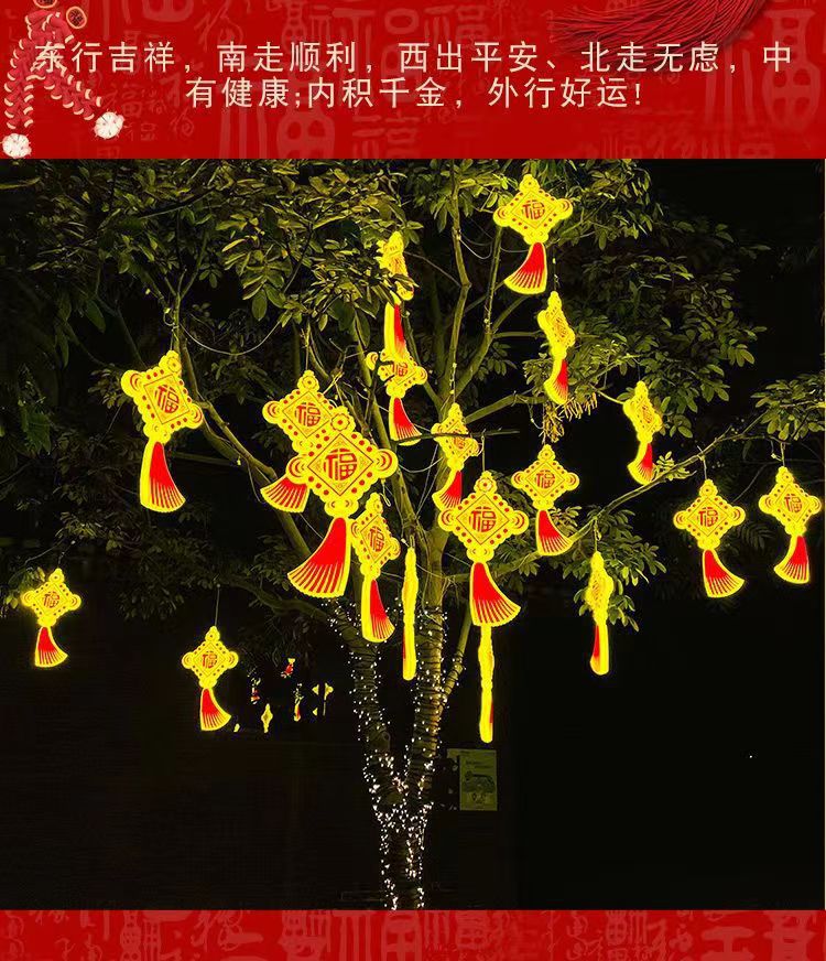 새로운 LED 빛나는 중국어 매듭 램프 야외 교수형 나무 랜턴 풍경 광장 조명 휴일 축복 문자 장식 램프
