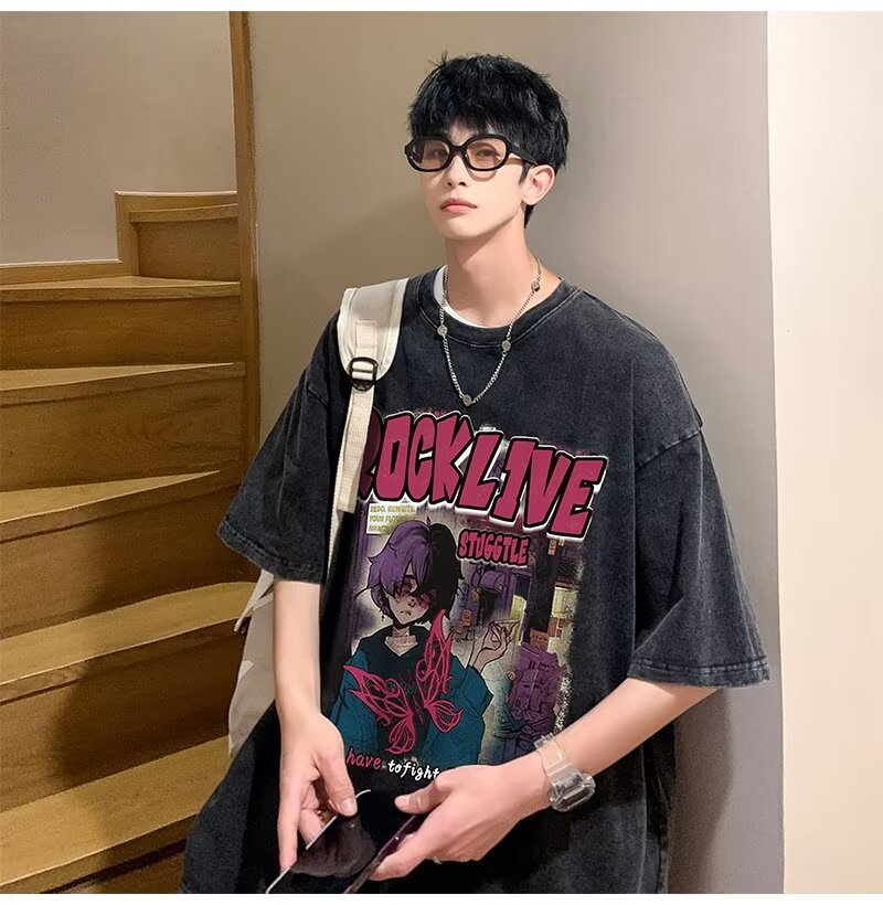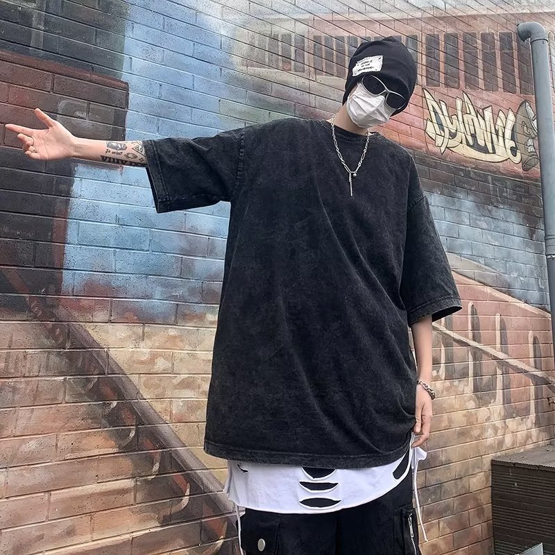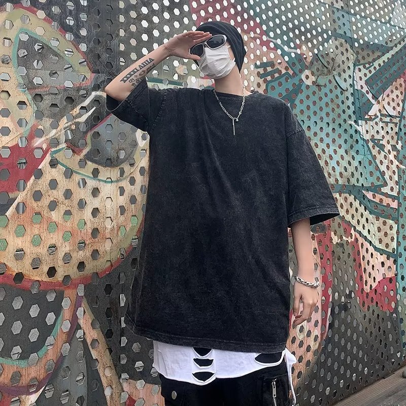 헤비 코튼 세탁 오래 된 반팔 티셔츠 남성 여름 아메리칸 스타일 하이 스트리트 트렌디 브랜드 유행 의류 루즈 티셔츠