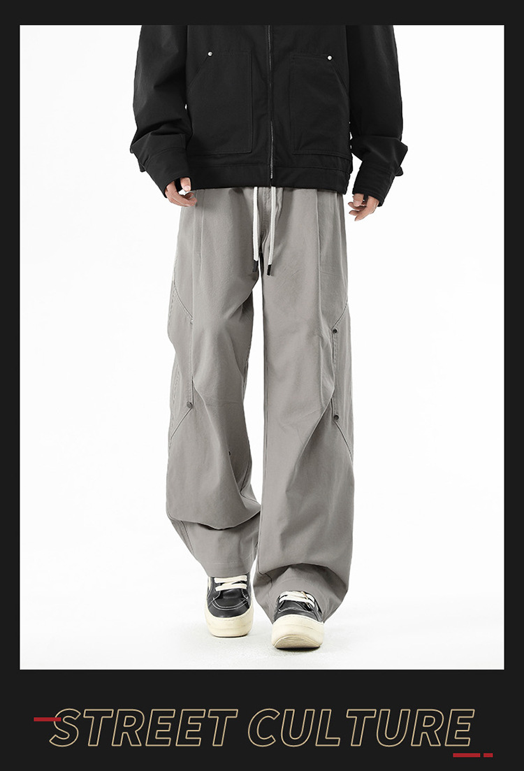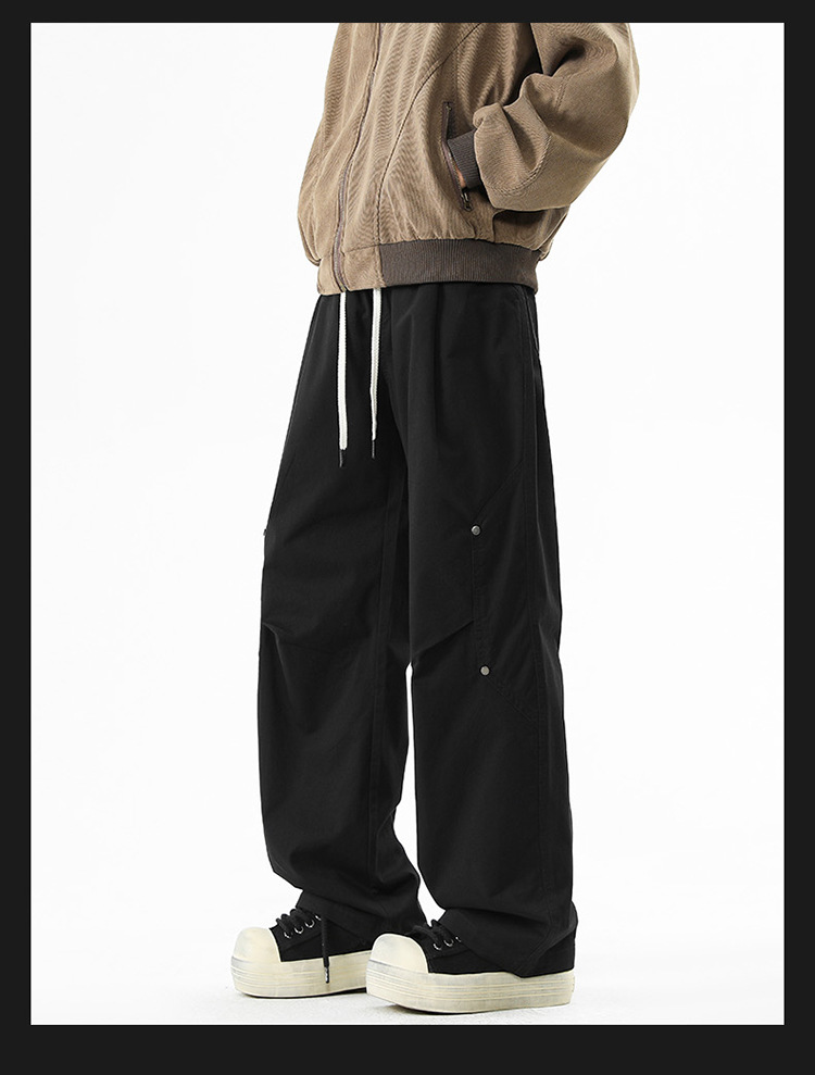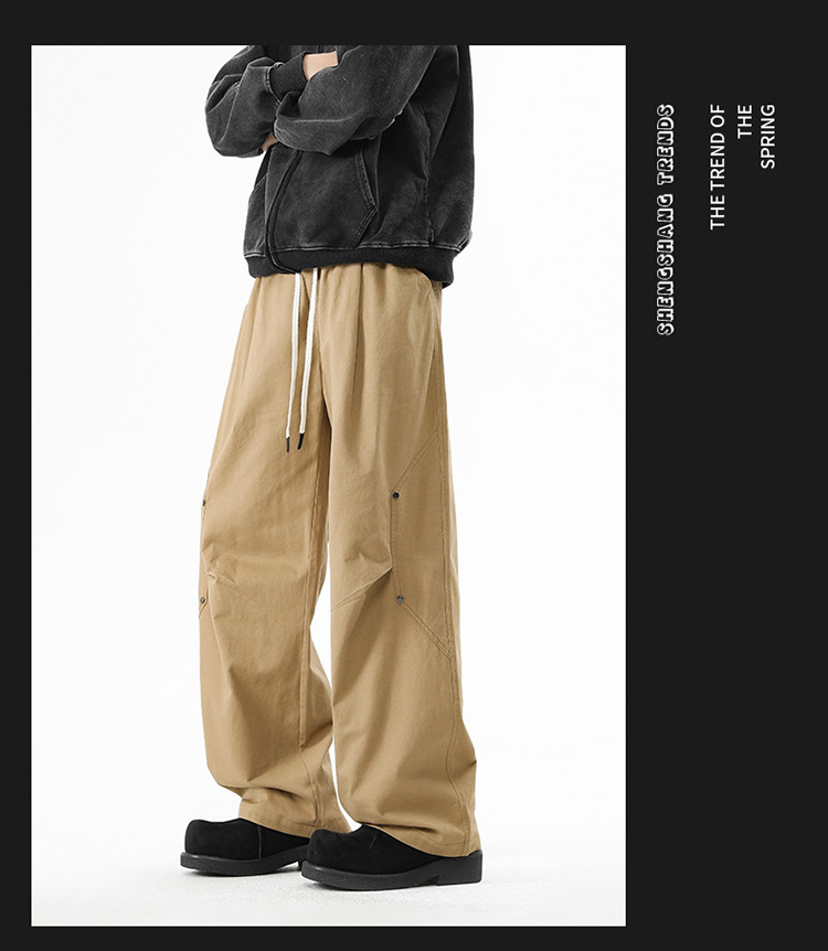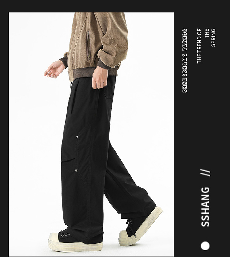 아메리칸 캐주얼 순면 다용도 작업복 남성 봄, 가을 스트레이트 와이드 팬츠 트렌디 브랜드 드레이프 롱 팬츠 2025 새로운 스타일