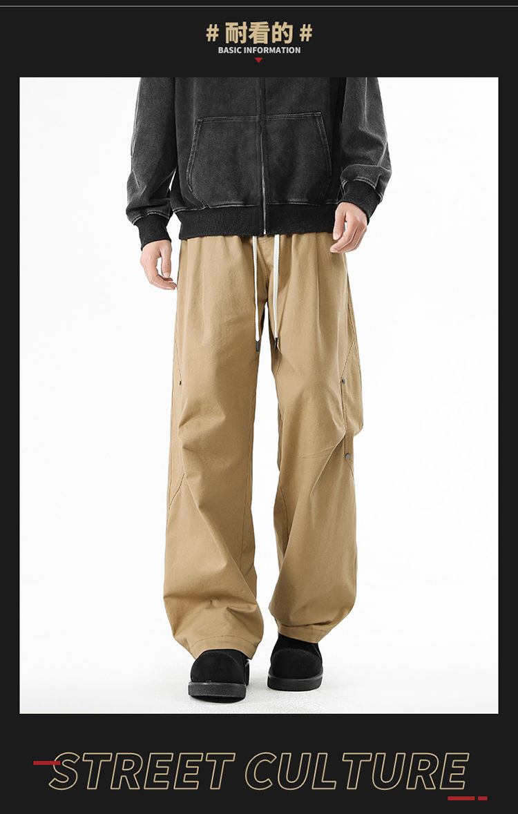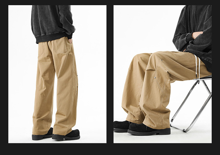 아메리칸 캐주얼 순면 다용도 작업복 남성 봄, 가을 스트레이트 와이드 팬츠 트렌디 브랜드 드레이프 롱 팬츠 2025 새로운 스타일스토어 가기