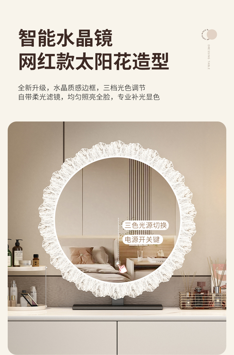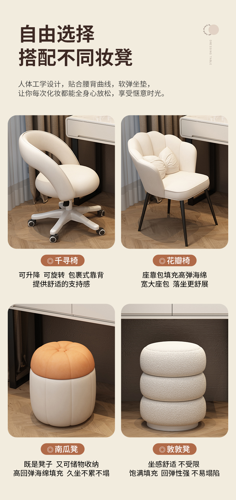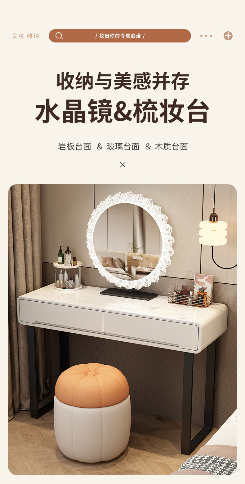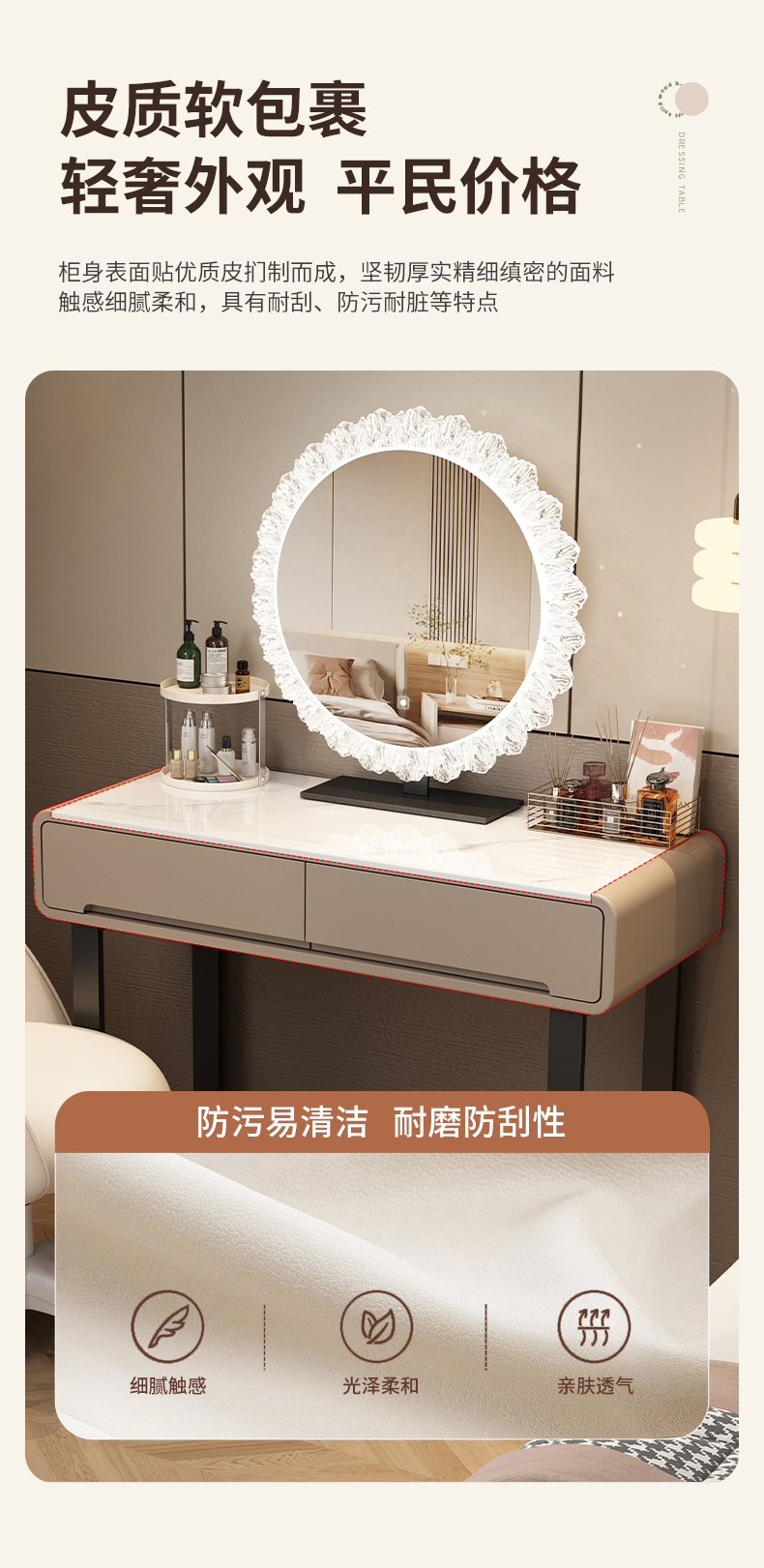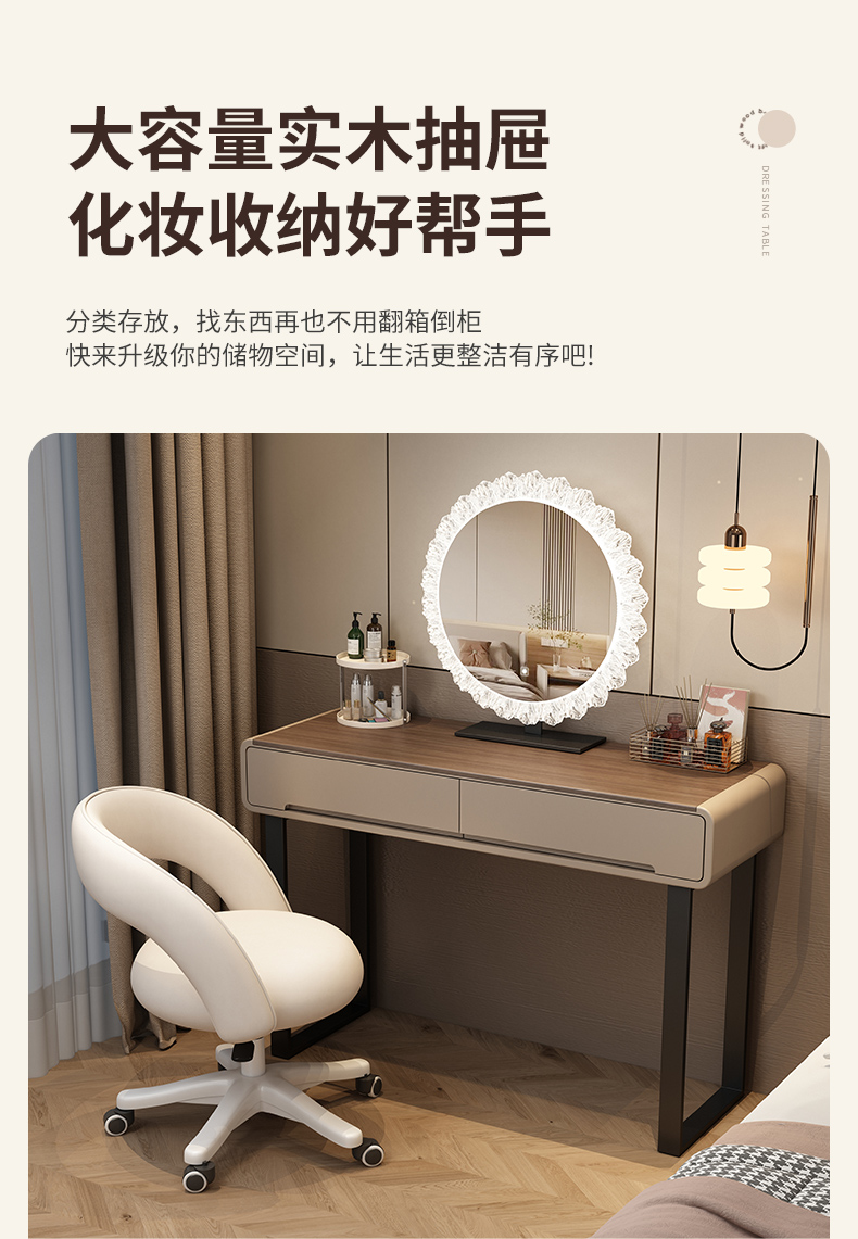 2025 새로운 스타일 드레싱 테이블 침실 현대 간단한 작은 아파트 드레싱 테이블 사이버 인기 라이트 럭셔리 유행 크림 메이크업 테이블