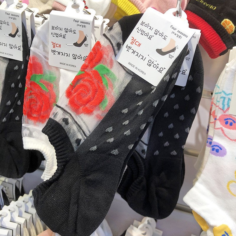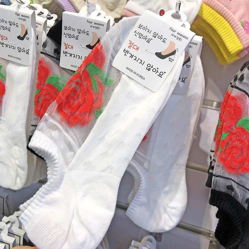 한국 봄 여름 신상 보트 양말 glalalane 메쉬 레드 로즈 소녀 얇은 면 밑창 양말 탈착 방지 보이지 않는 양말스토어 가기