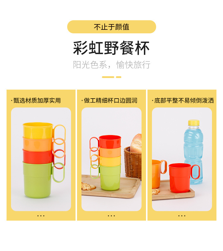 남해 여행 휴대용 무지개 컵 야외 피크닉 마시는 차 컵 핸디 컵 4 색 세트 플라스틱 컵