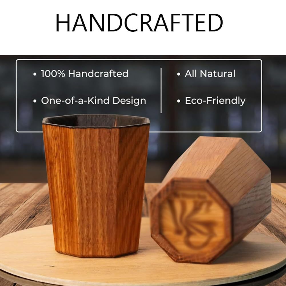 耐用且自然独特每个杯子均由实心橡木精心手工制作,确保没有两件完全相同。木材的天然纹理变化和手工烧焦营造出粗犷、有机的美感,提升每一口威士忌的品质