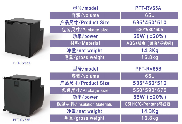 RV 系列压缩机制冷冰箱提供独立的冷冻室部分,并具有双重温度控制。它比迷你冰箱大,但比传统冰箱小,非常适合欧洲厨房、小公寓、小房子、船屋和房车。耐用的金属搁板和储物架,便于整理。您可以轻松地将冰箱安装在任何厨房布局中,因为侧面没有突出部分,可以在需要的地方无缝贴合。