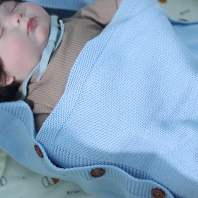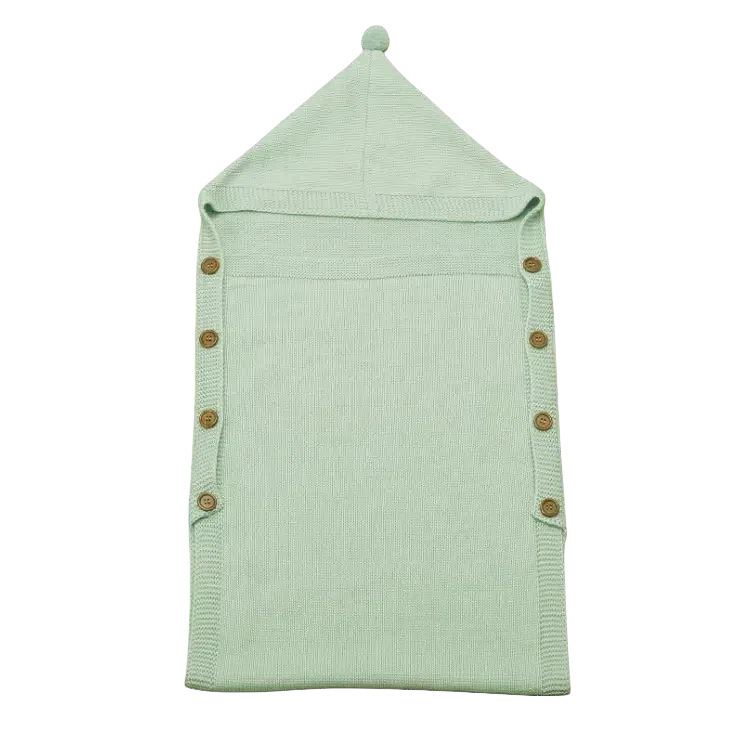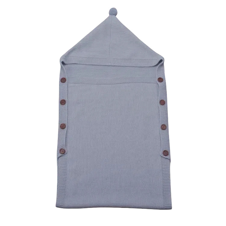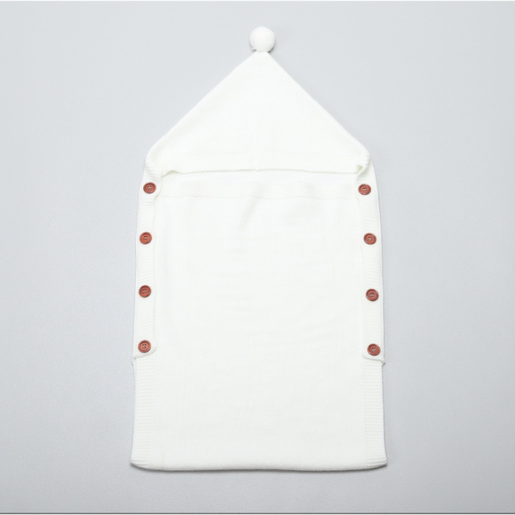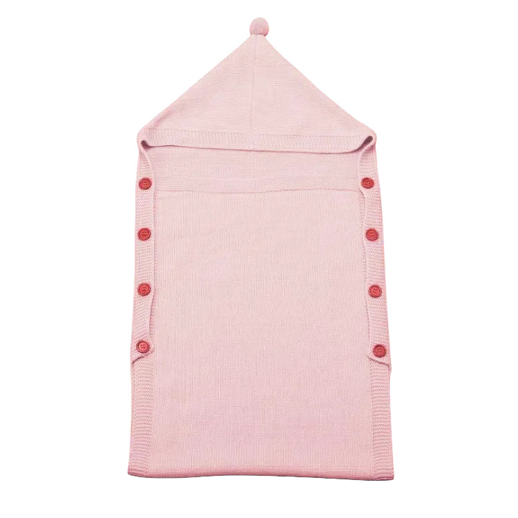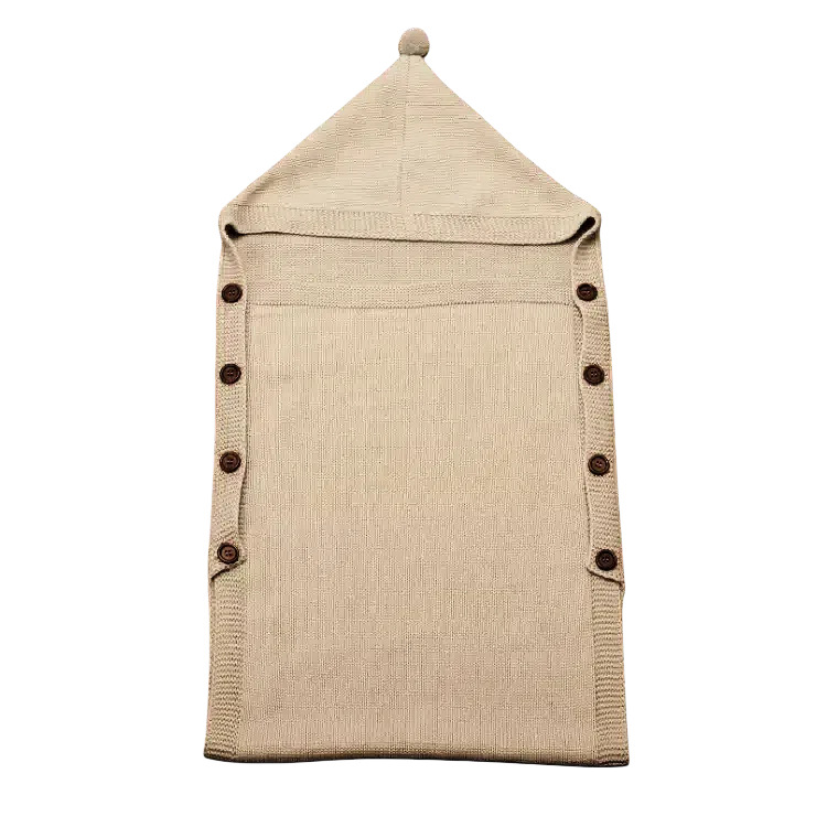 도매 사용자 정의 신생아 아기 니트 슬리핑 백 헤어 볼 후드 트롤리 따뜻한 버튼 슬리핑 백 니트 슬리핑 백