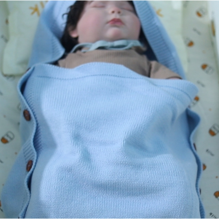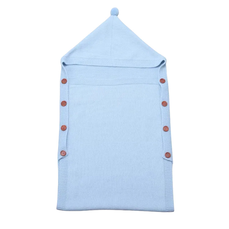 도매 사용자 정의 신생아 아기 니트 슬리핑 백 헤어 볼 후드 트롤리 따뜻한 버튼 슬리핑 백 니트 슬리핑 백스토어 가기