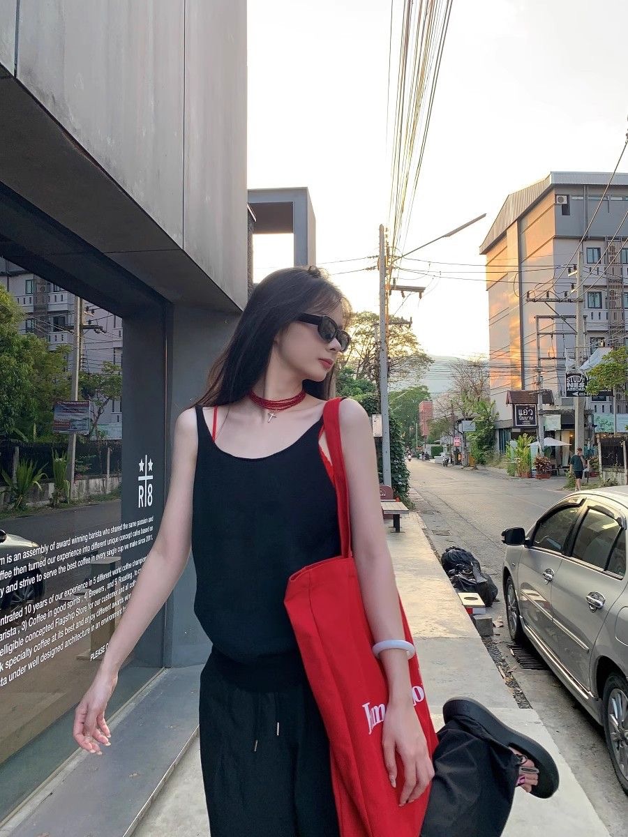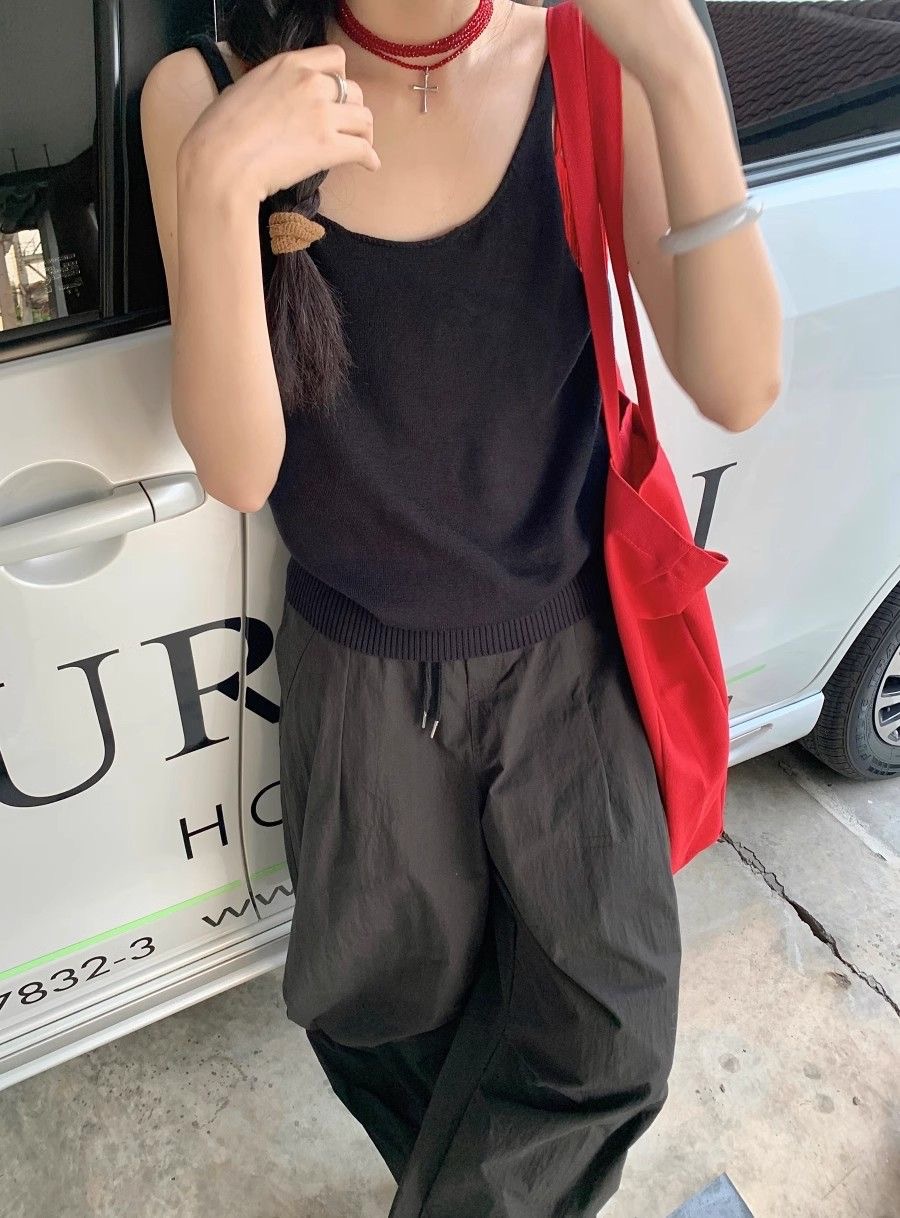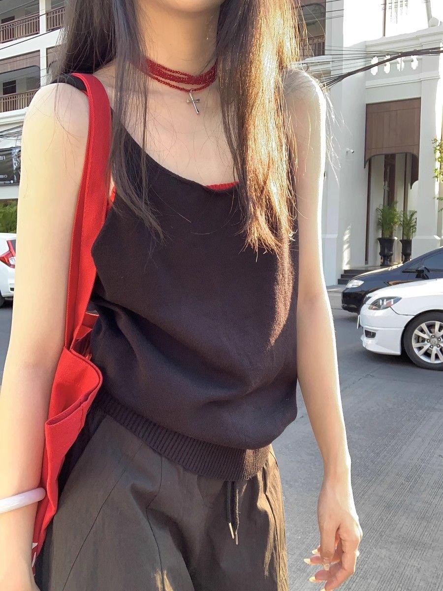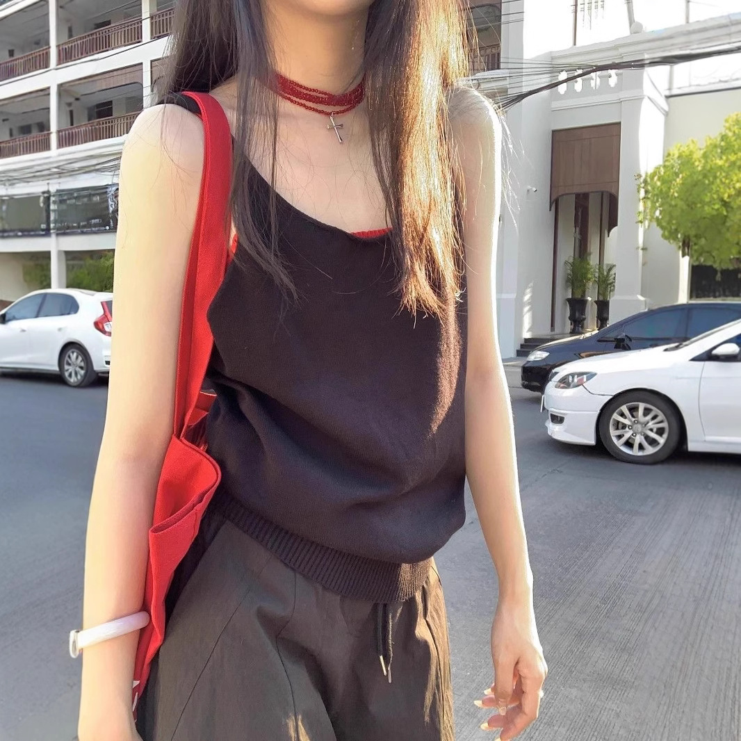 회색 니트 작은 카미 솔 여성 내복 여름 새로운 스파이스 걸스 외부 착용 백리스 느슨한 슬림 소매 탑