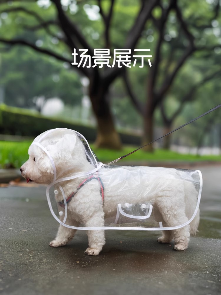 개 비옷 판초 배꼽 보호 테디 특수 중형 개 Bixiong Puppy 투명 판초 방수 애완 동물 옷