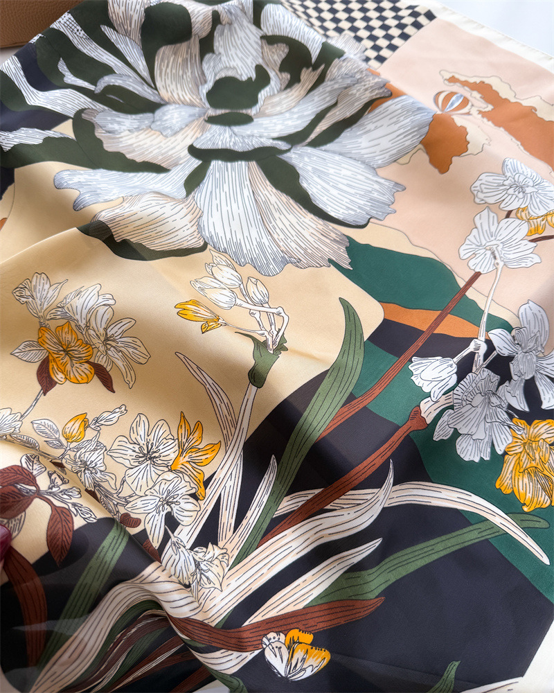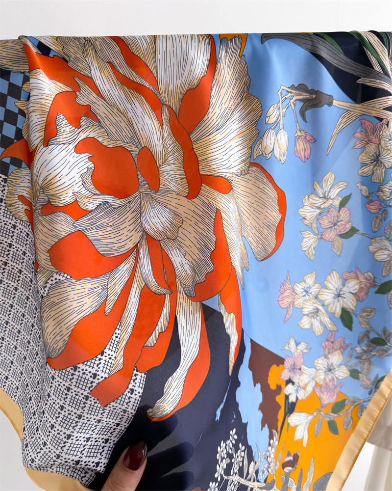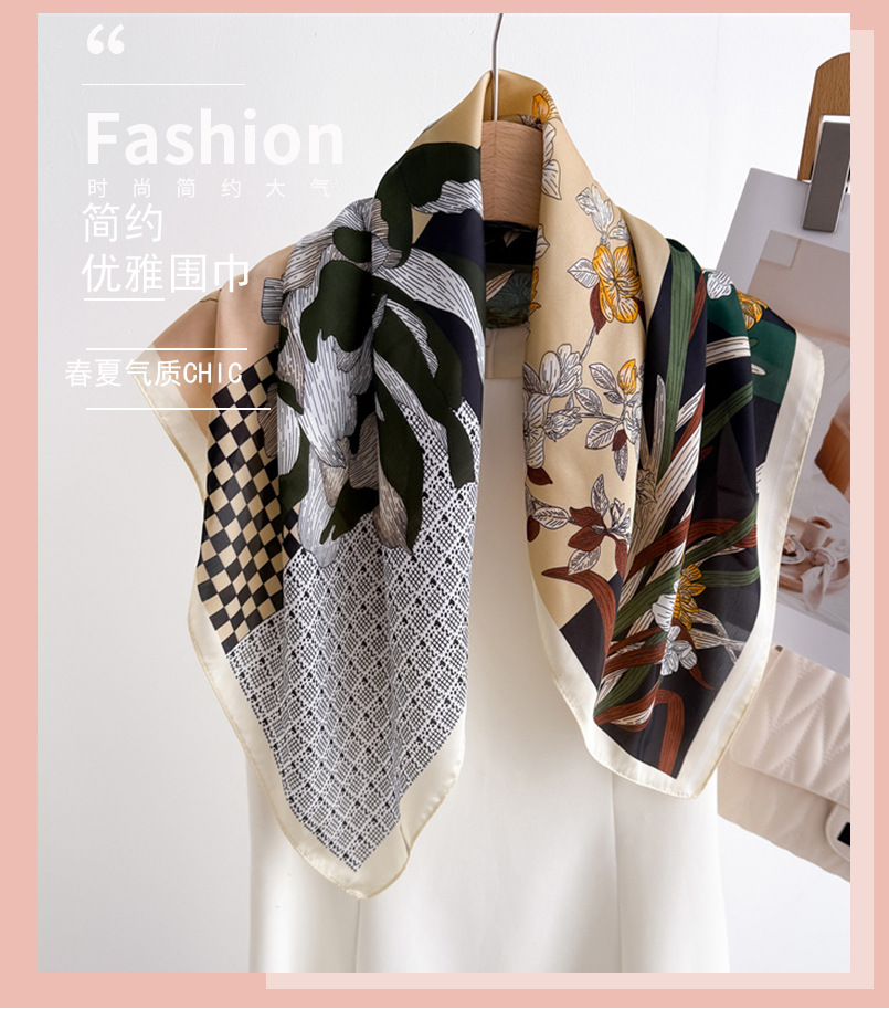 예술 맞춤법 라임 꽃 그림자 인쇄 실크 스카프 광장 스카프 고급 감각 목도리 다목적 목 작은 광장 스카프 여성 스카프