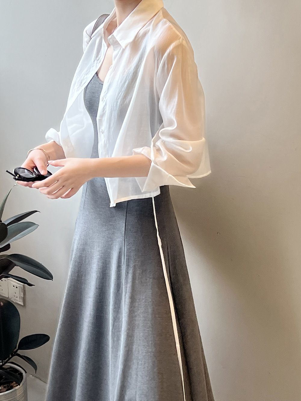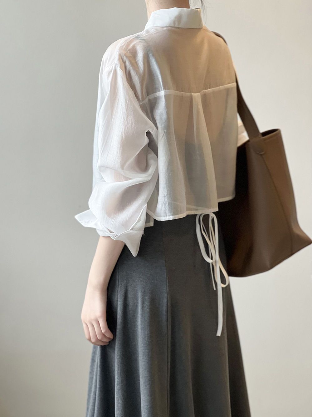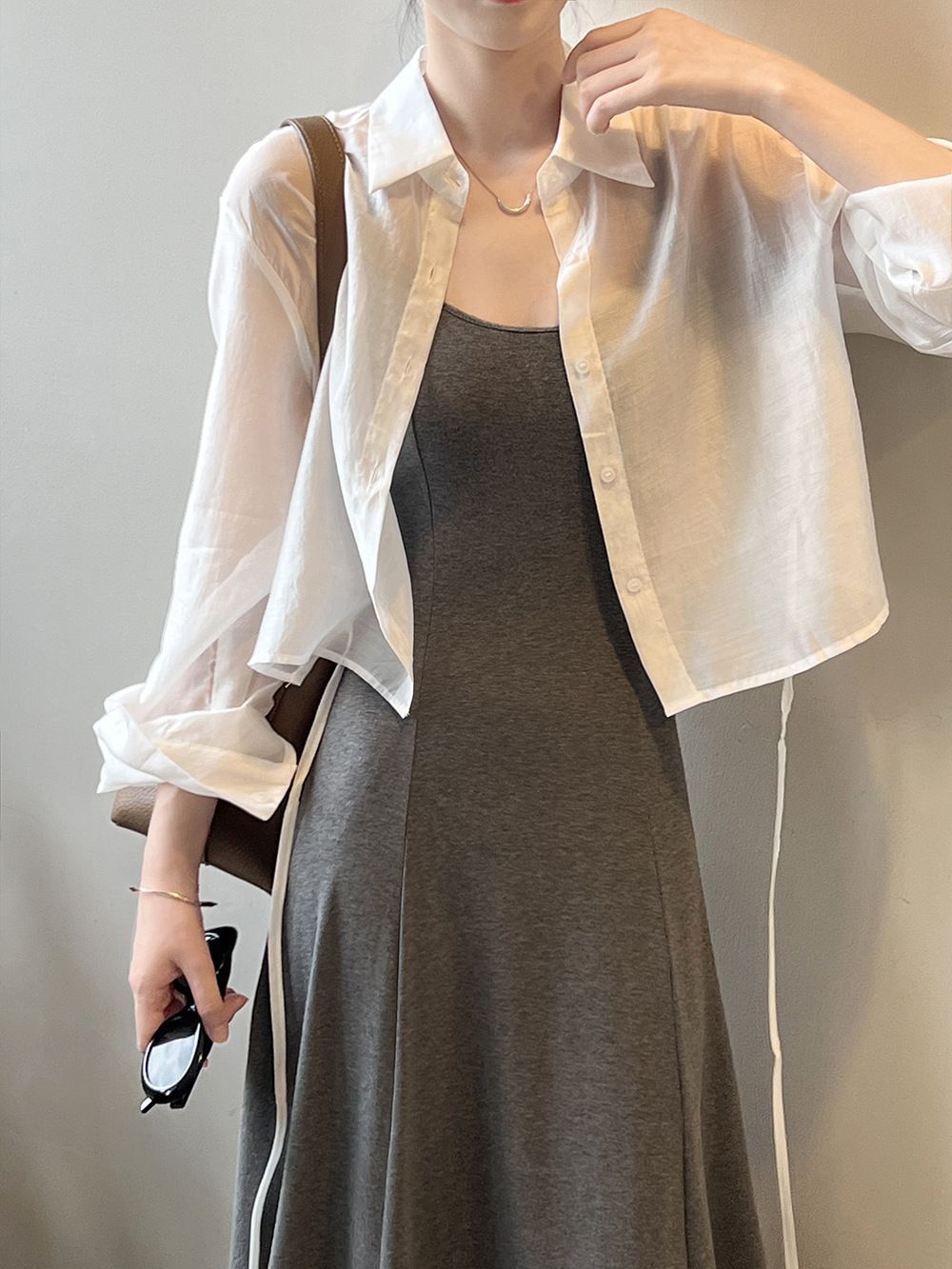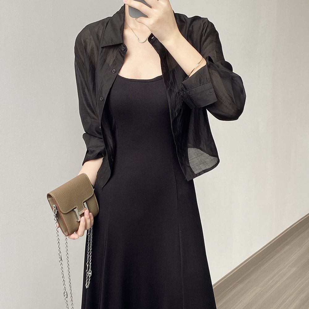 얇은 긴팔 선 스크린 쉬폰 셔츠 여성 디자인 센스 니쉬 백 레이스 업 카디건 여름 쇼트 탑스토어 가기