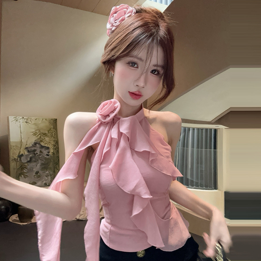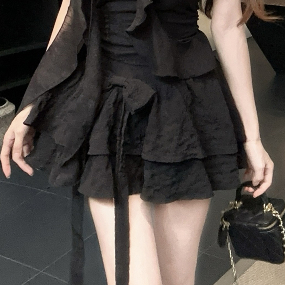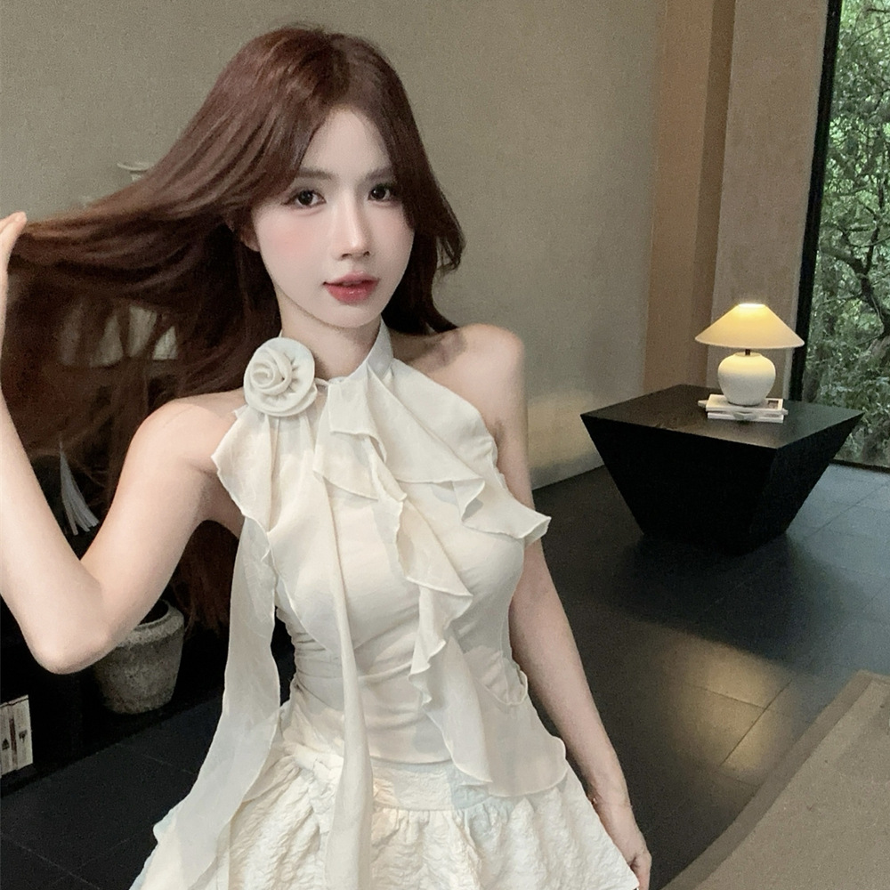18YXD5660 유럽과 미국 2026 해외 무역 달콤한 러플 민소매 쉬폰 셔츠 탑과 스커트 세트