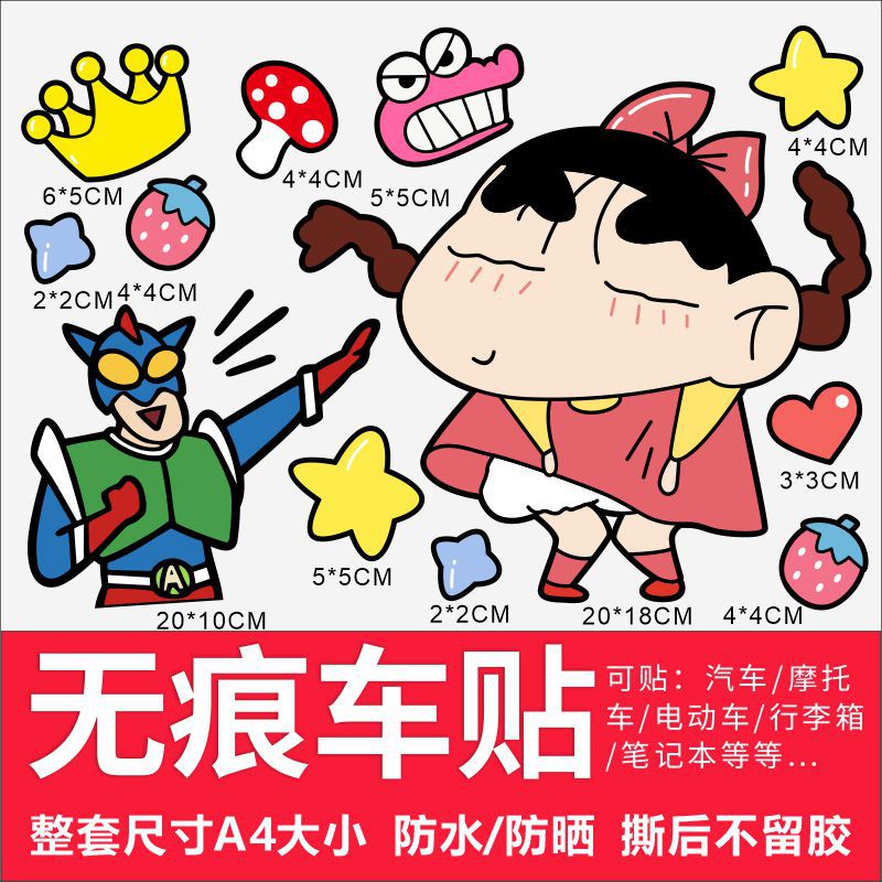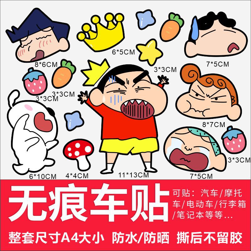 크레용 작은 새로운 만화 만화 방수 자동차 스티커 전기 오토바이 맞춤형 방수 커버 스크래치 스티커스토어 가기