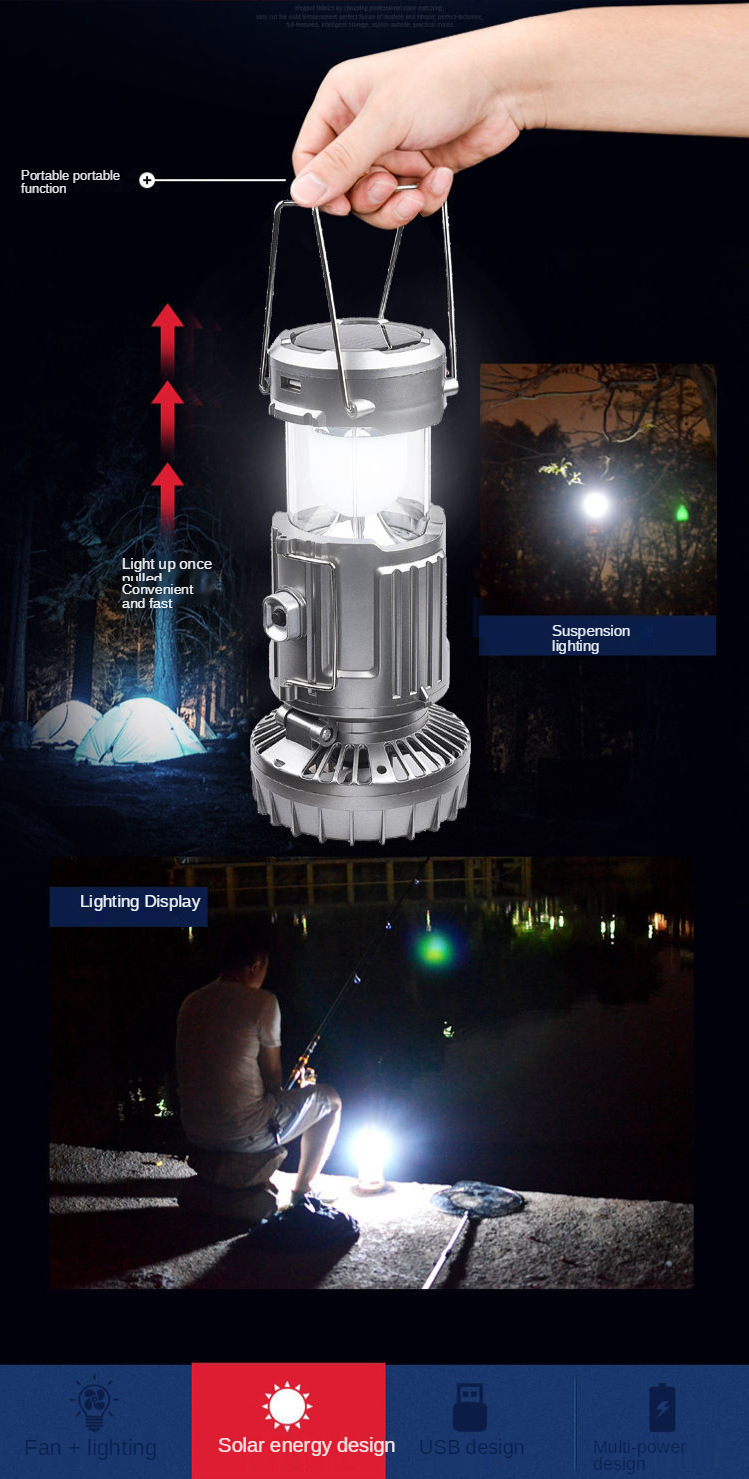 다기능 태양 팬 휴대용 스트레치 야외 램프 캠핑 램프 랜턴 말 램프
