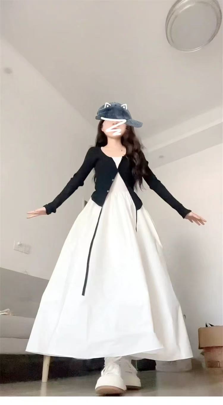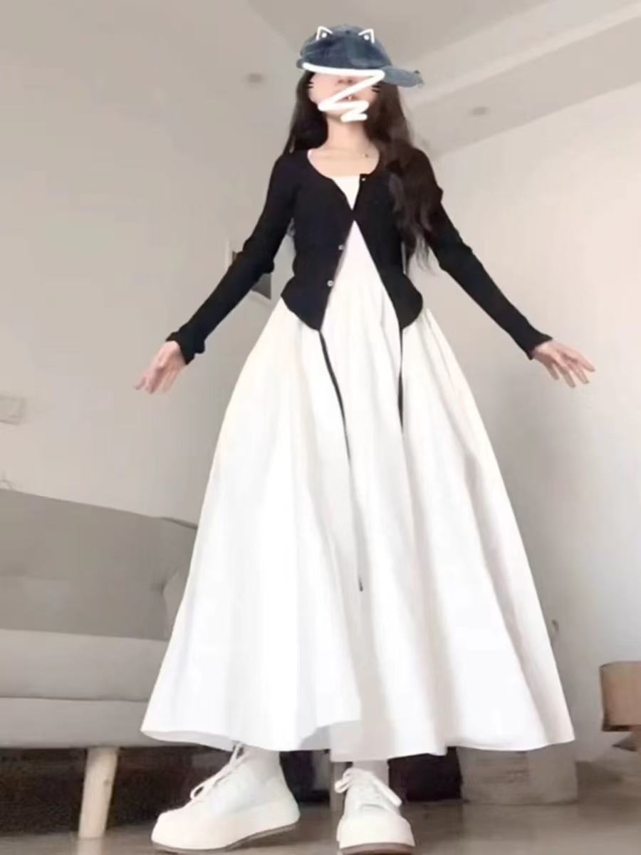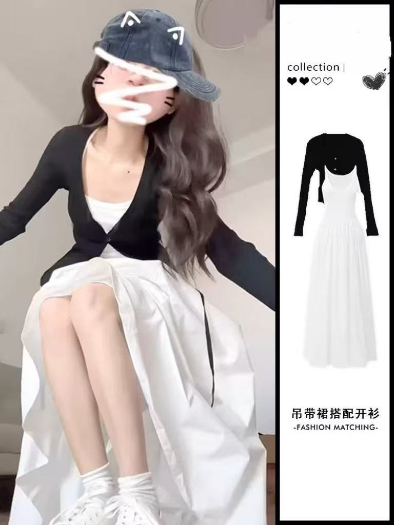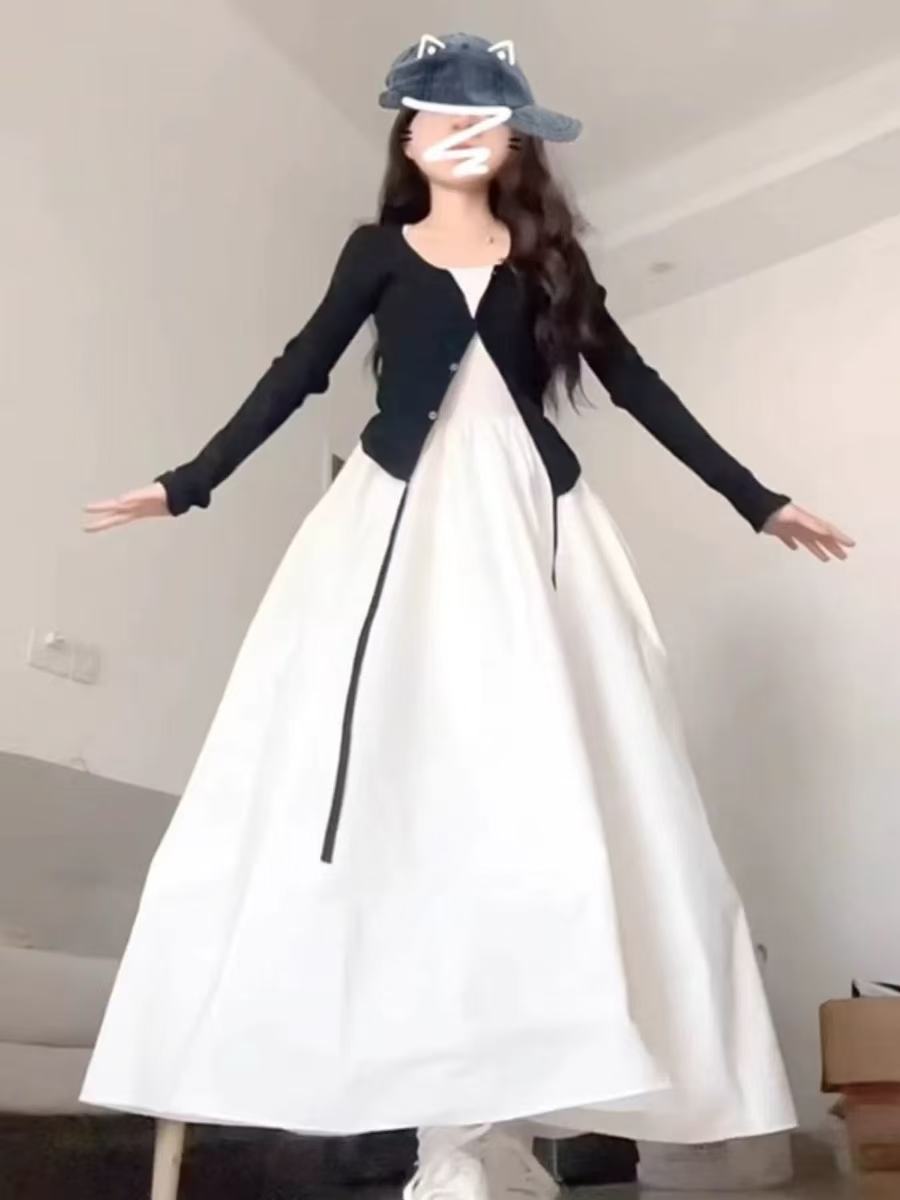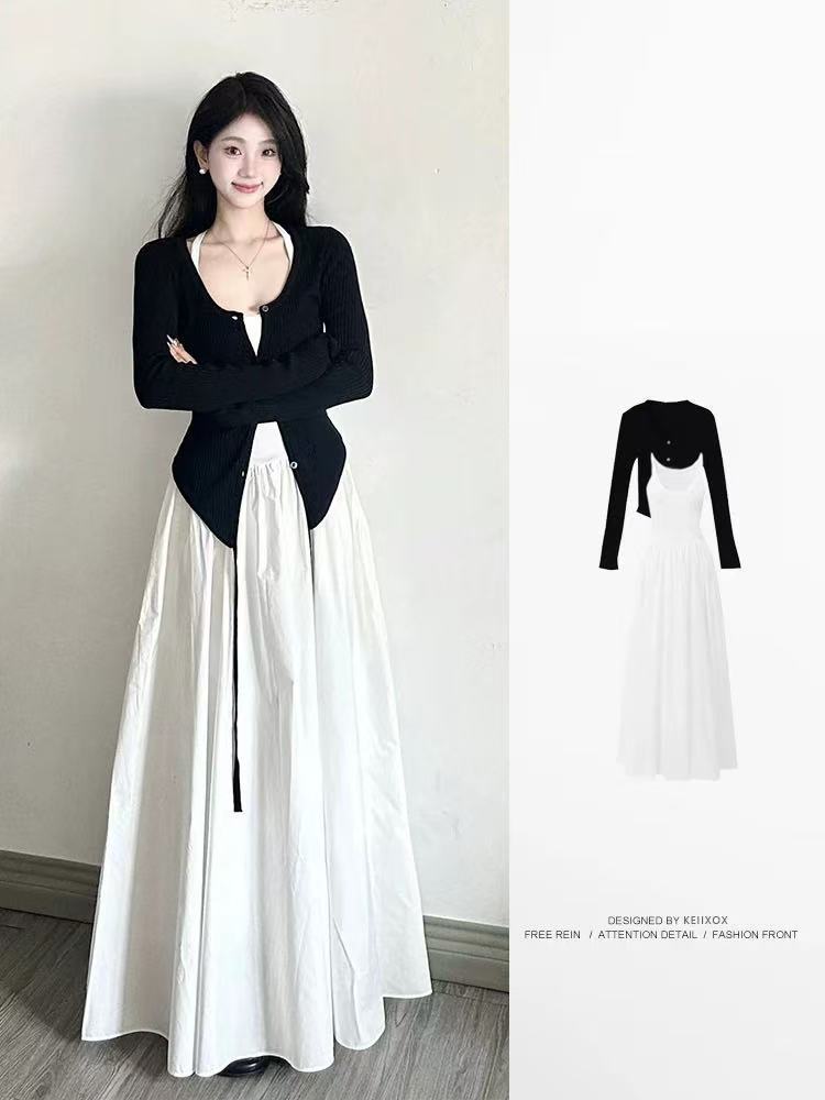 • 블랙 가디건 + 화이트 원피스 [투피스세트]