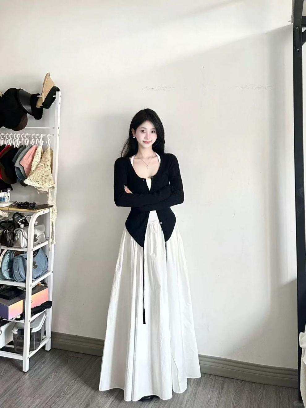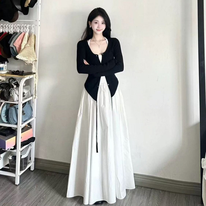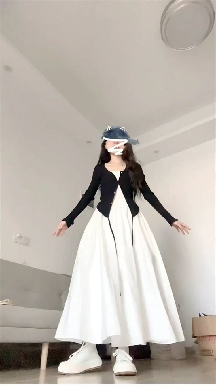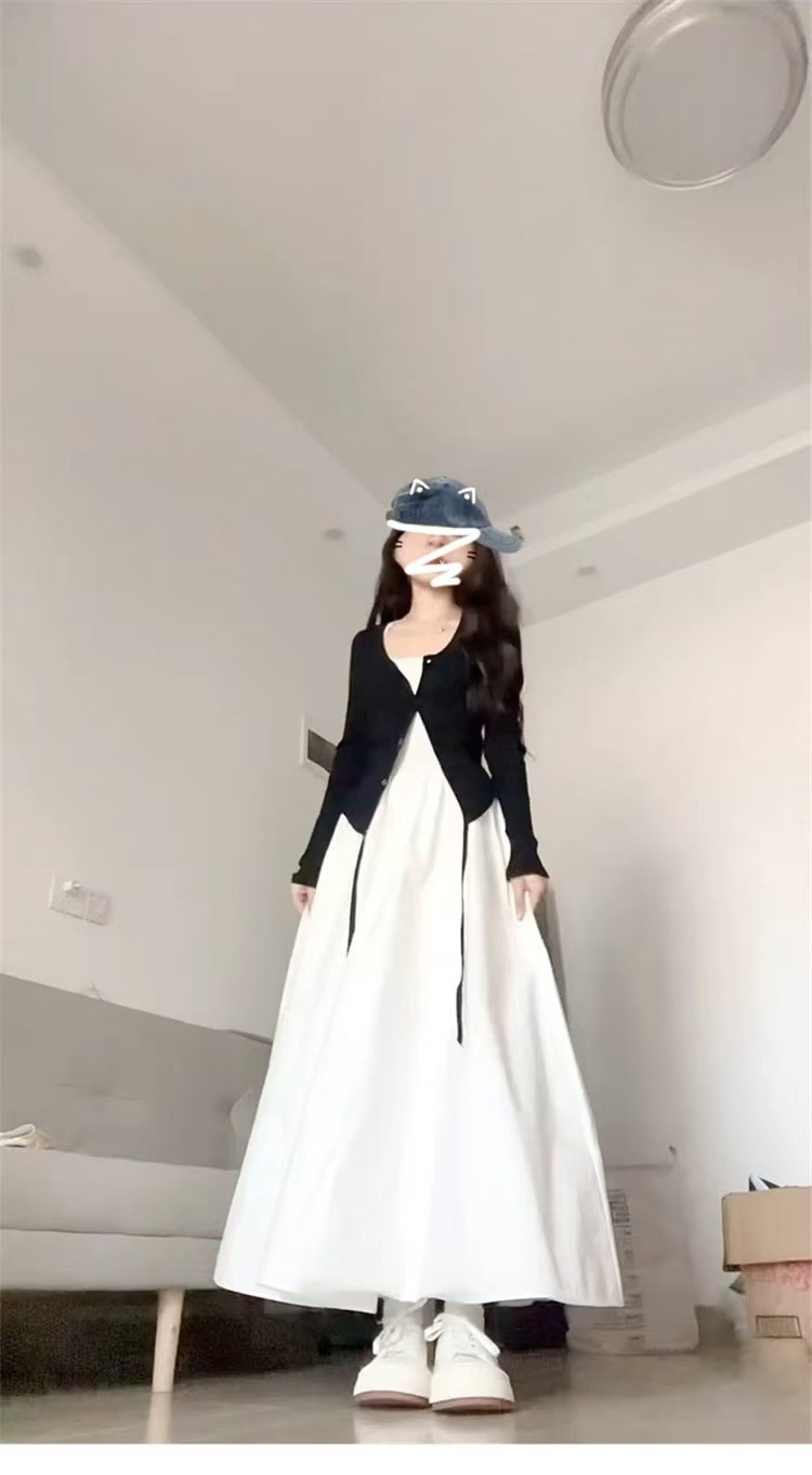 • 블랙 가디건 + 화이트 원피스 [투피스세트]