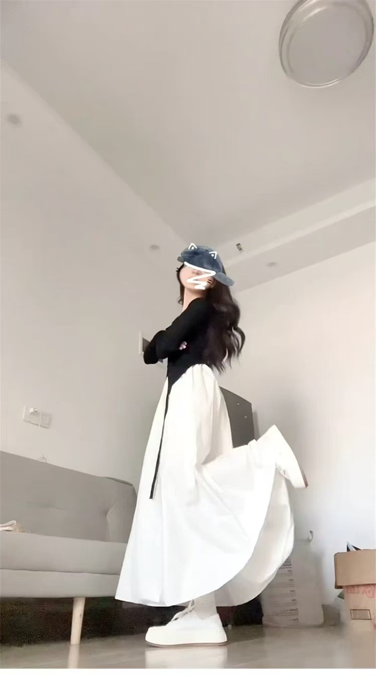 차 브레이크 프렌치 화이트 슬링 원피스 여성의 2025 여름 새로운 순수한 달콤하고 매운 허리 슬리밍 긴 스커트스토어 가기