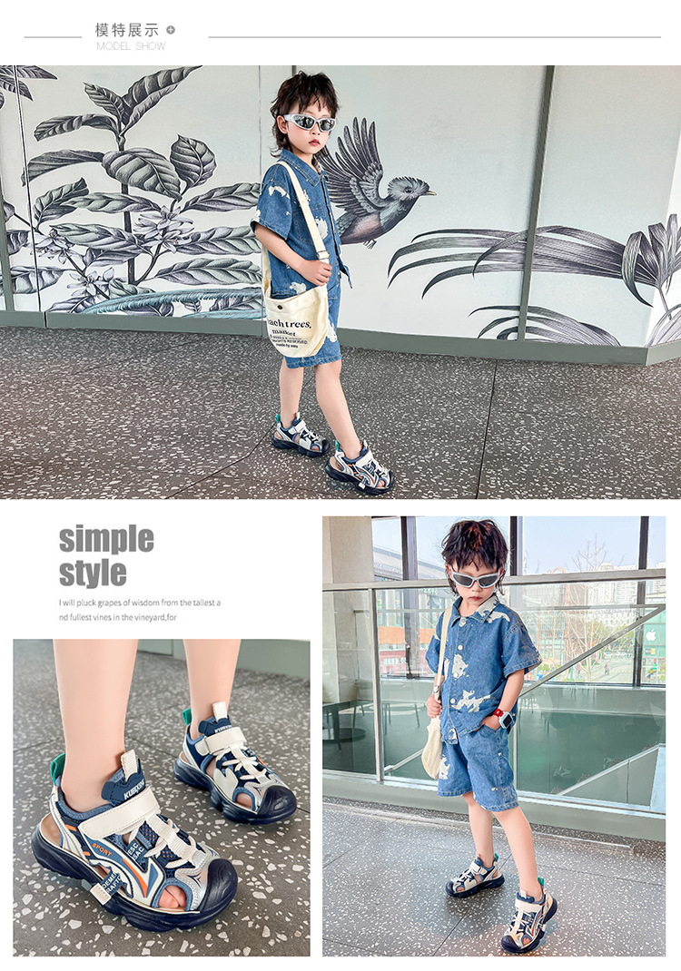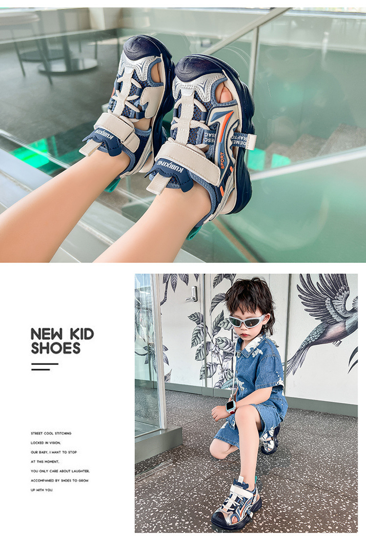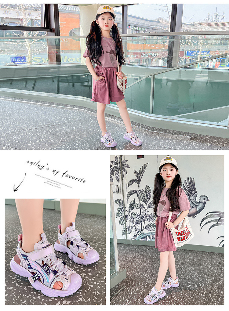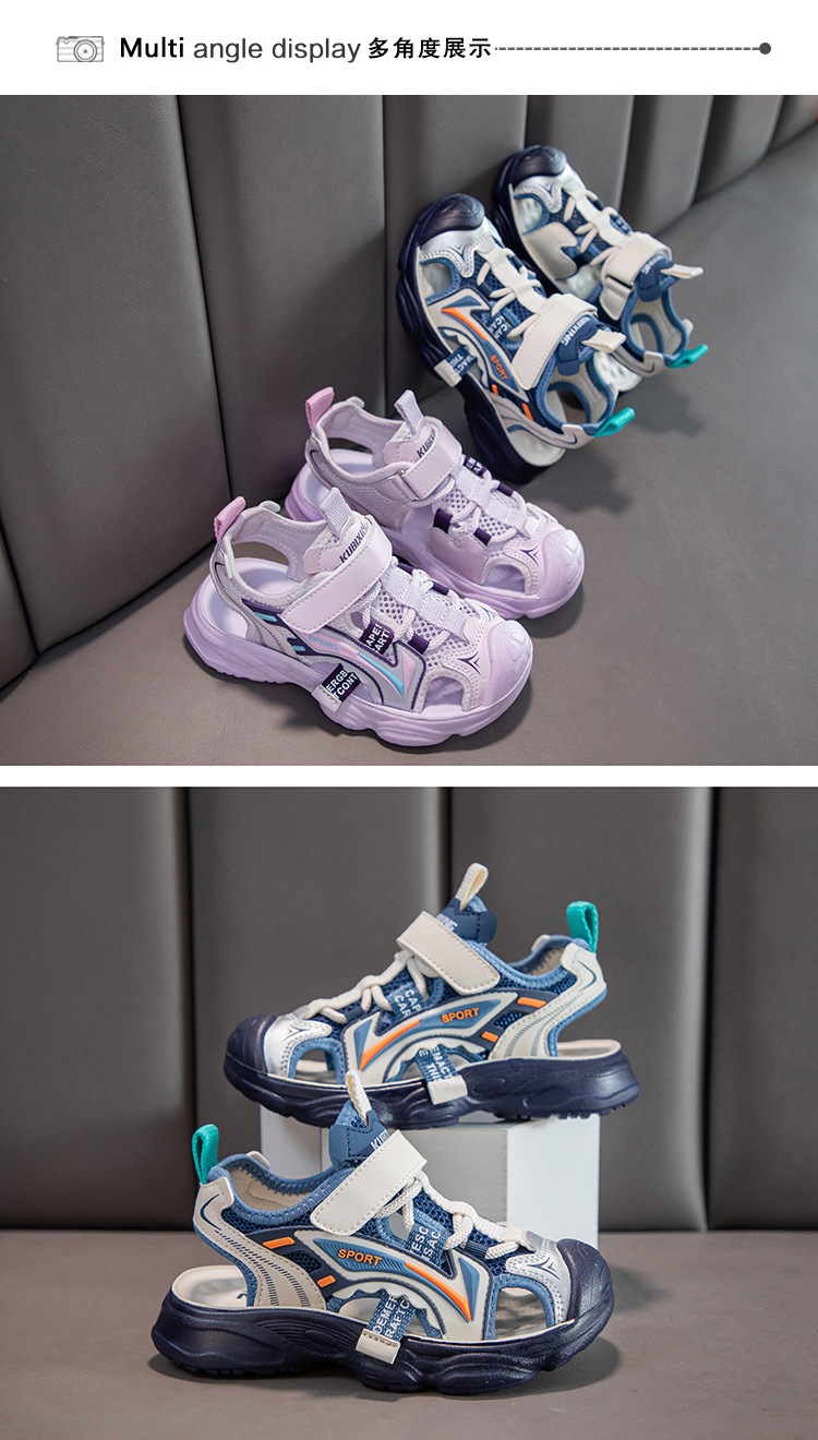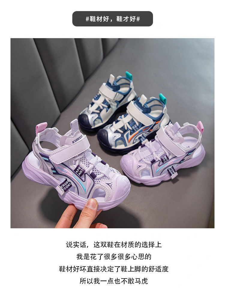 어린이 샌들 소년 여름 해변 신발 2025 새로운 미끄럼 방지 소프트 솔 걸스 중 큰 어린이 스포츠 샌들 국경스토어 가기