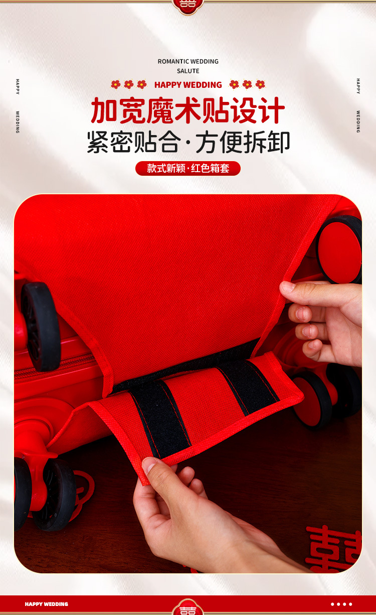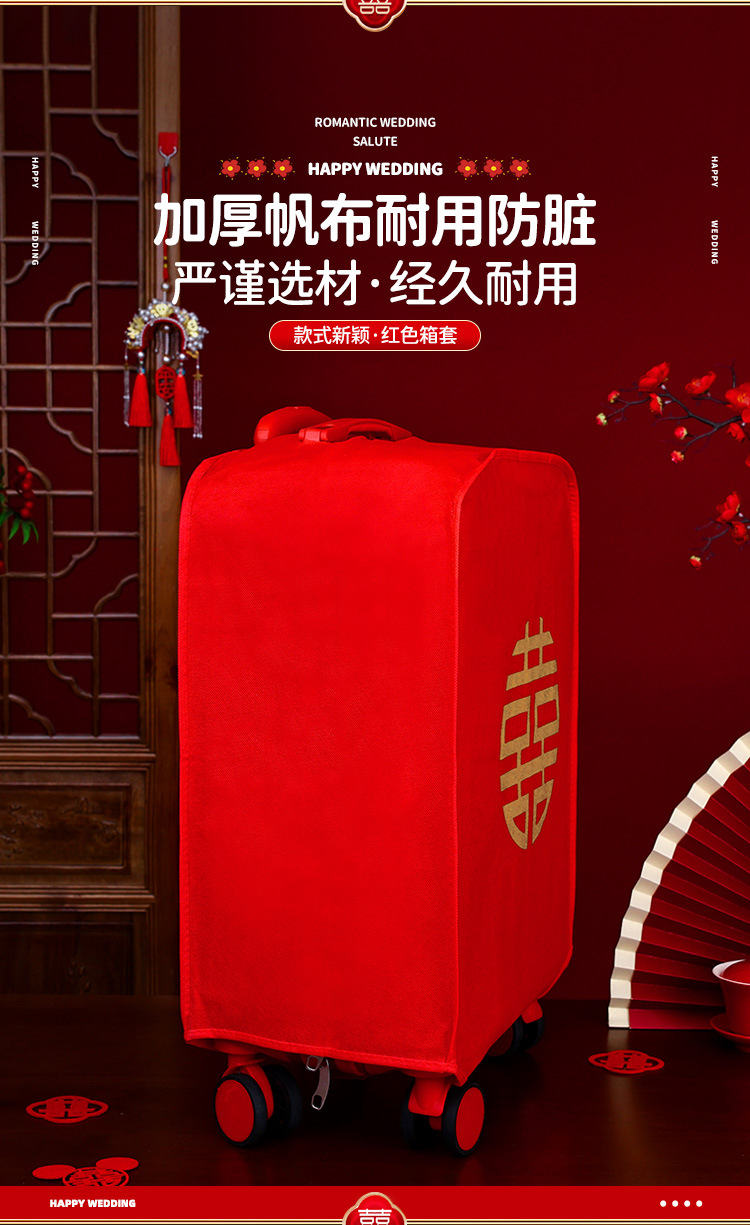 여행가방 커버, 웨딩 보호 커버, 빨간색 일회용 상자, 트롤리 케이스, 여성용 결혼식 용품스토어 가기