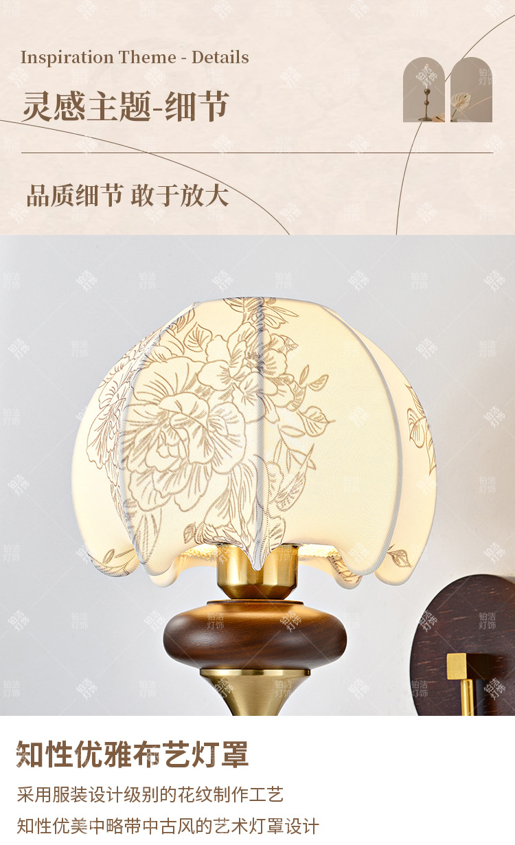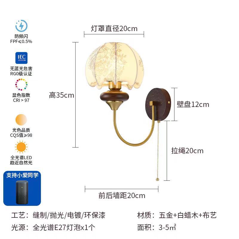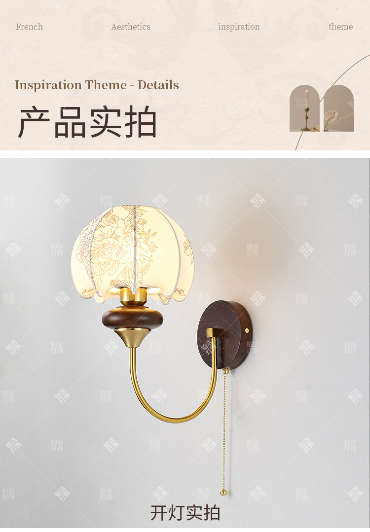 프랑스 중간 고대 벽 램프 침실 침실 램프 미국 복고풍 패턴 원단 거실 단단한 나무 램프 풀 와이어 스위치스토어 가기