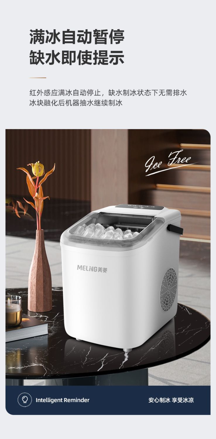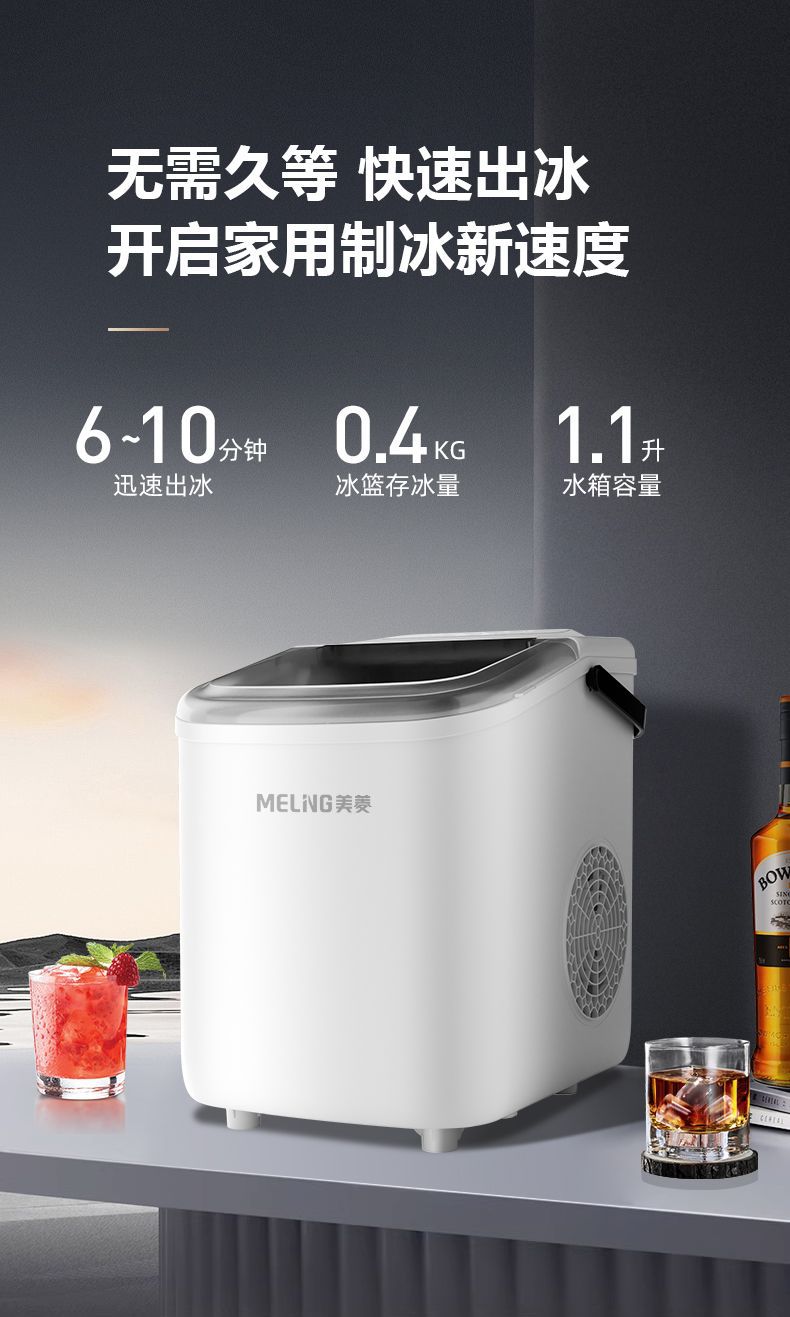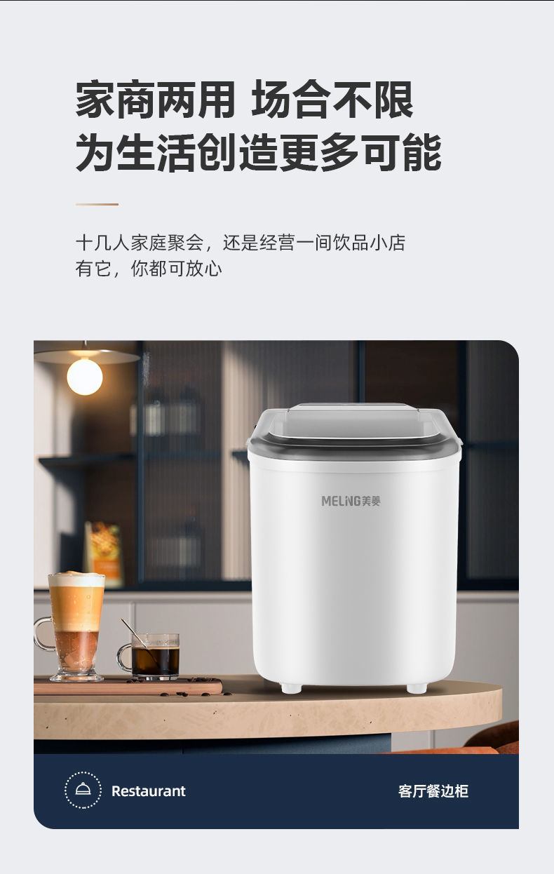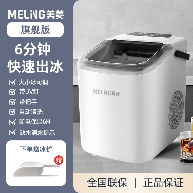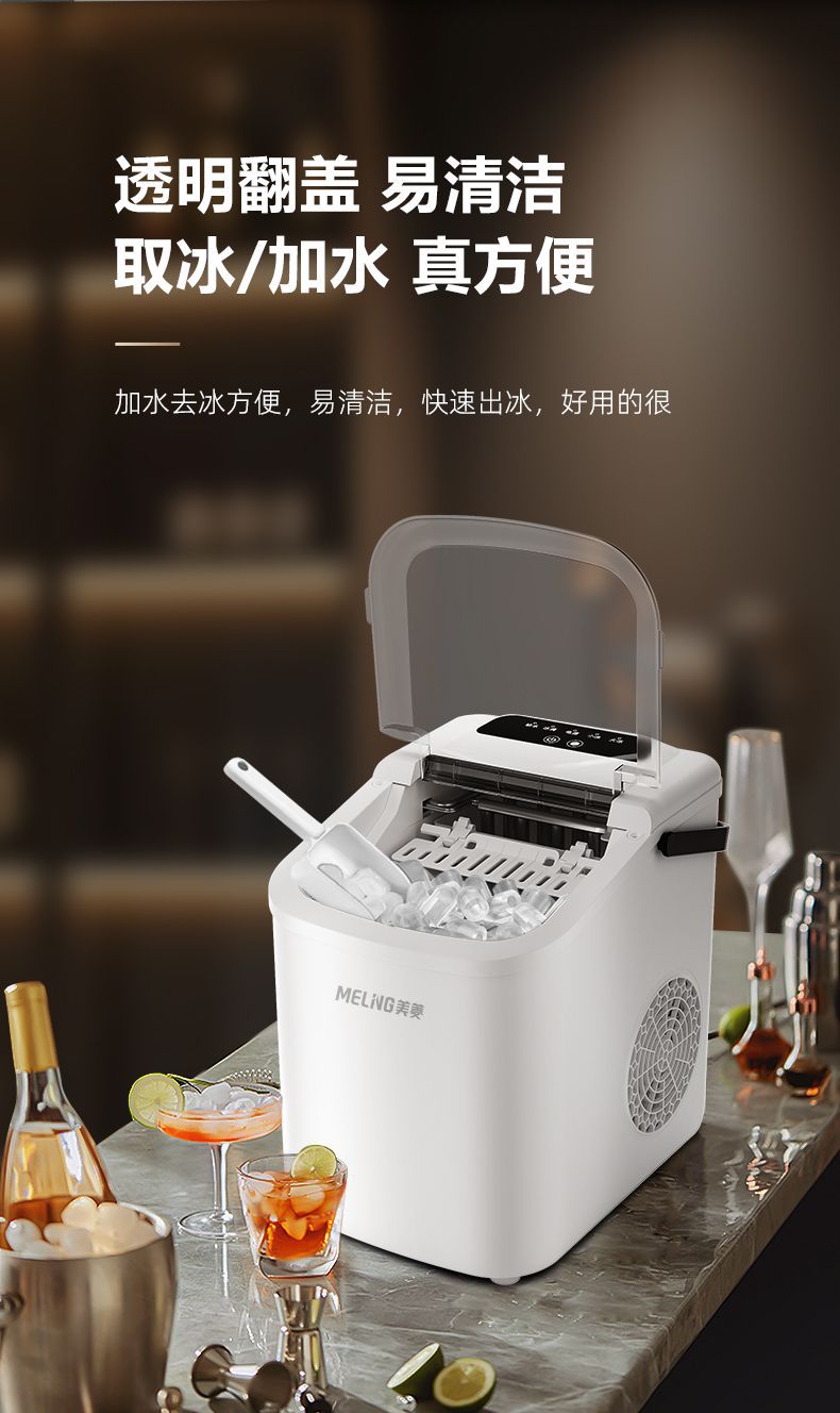 Meiling 아이스 메이커 작은 우유 차 가게 상업용 15kg 가정용 미니 기숙사 라운드 자동 얼음 만들기 기계