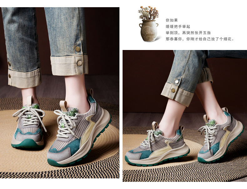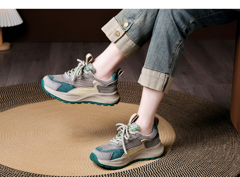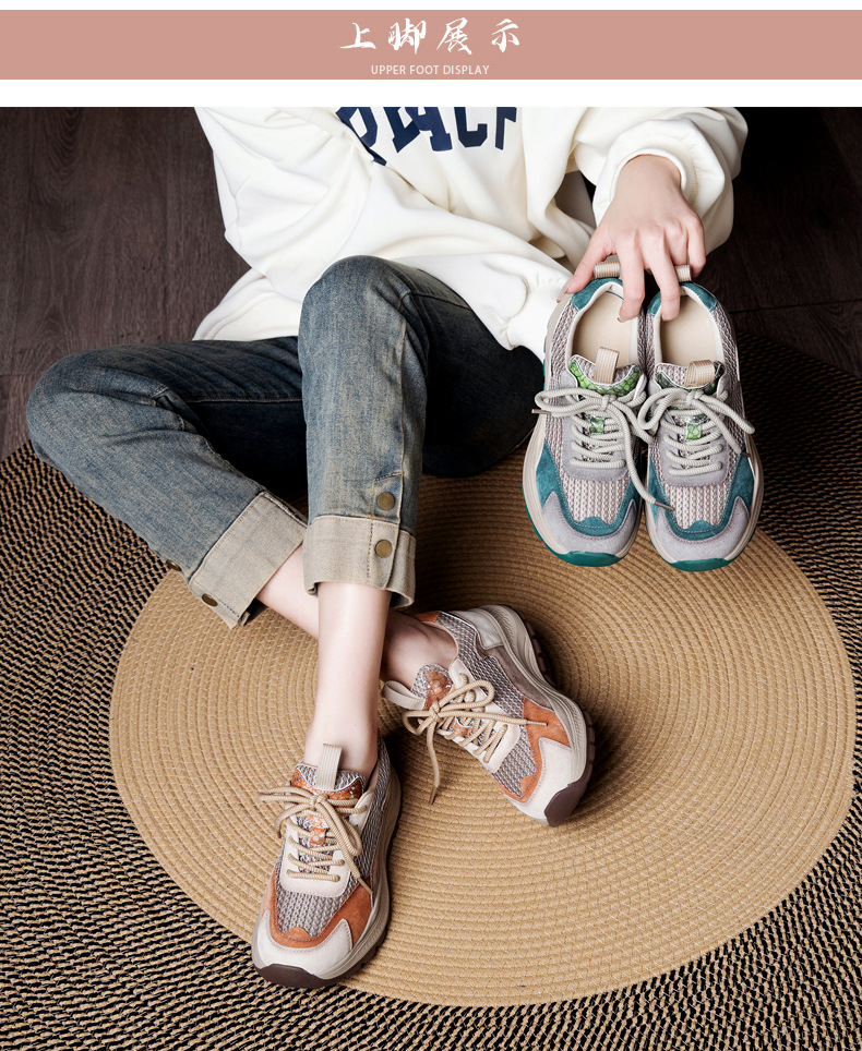 여성 신발 2025 봄과 여름 새로운 레트로 캐주얼 운동화 여성 소프트 하단 경량 메쉬 돼지 올 매치 토레 신발스토어 가기