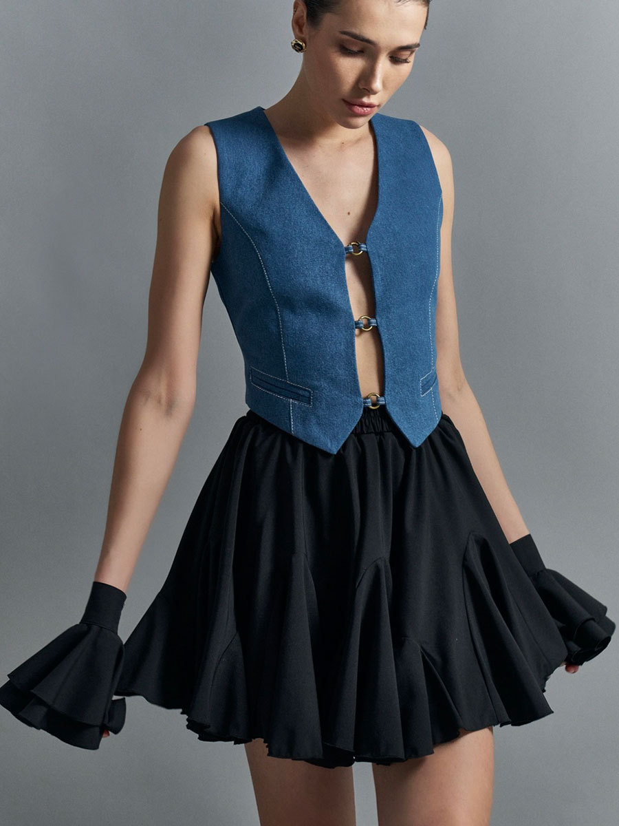 유럽 및 미국 2025 여름 새로운 Y2K 스트리트 패션 스티칭 미니 주름 치마