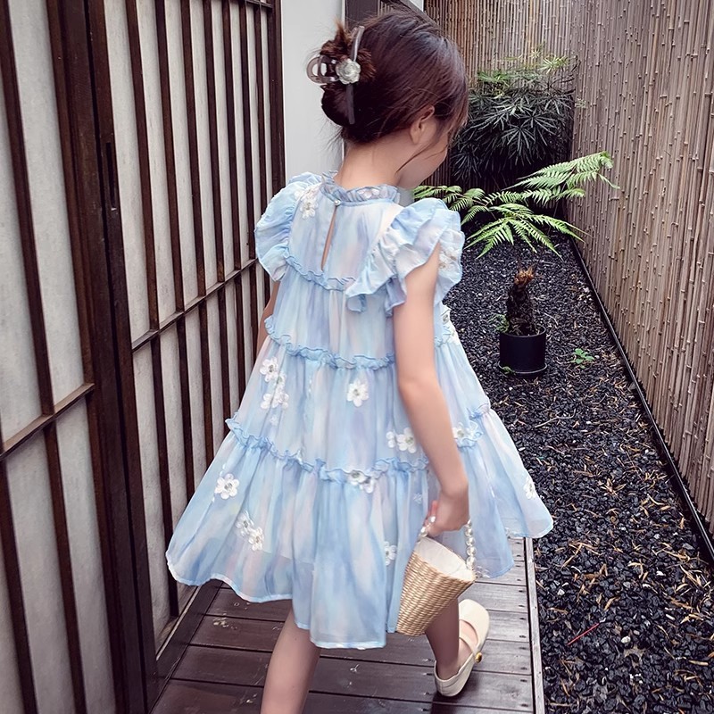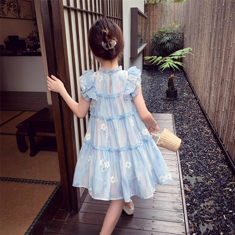 여자 조끼 스커트 여름 2025 새로운 스타일 어린이 꽃 쉬폰 공주 스커트 소녀의 프릴 소매 원피스스토어 가기