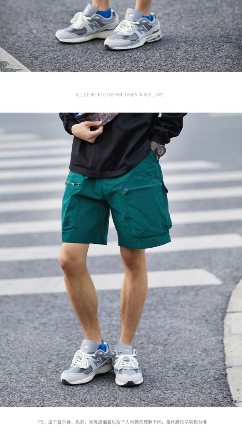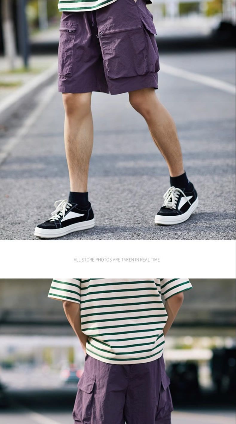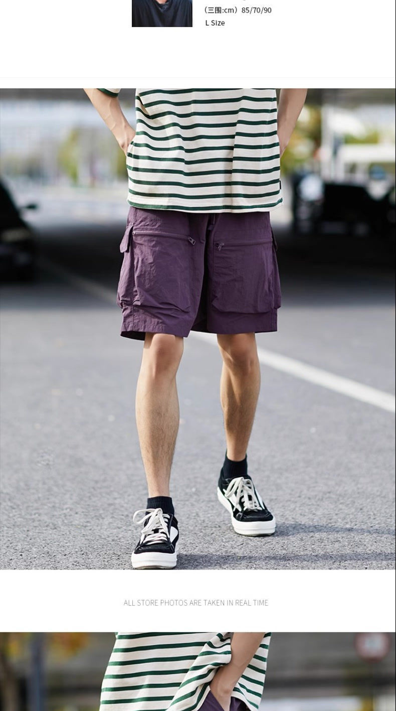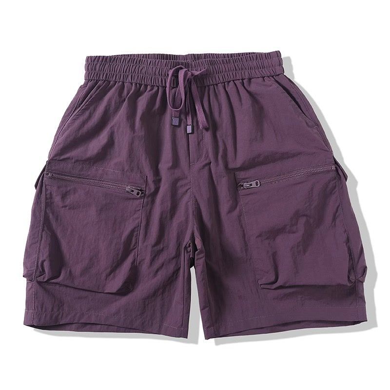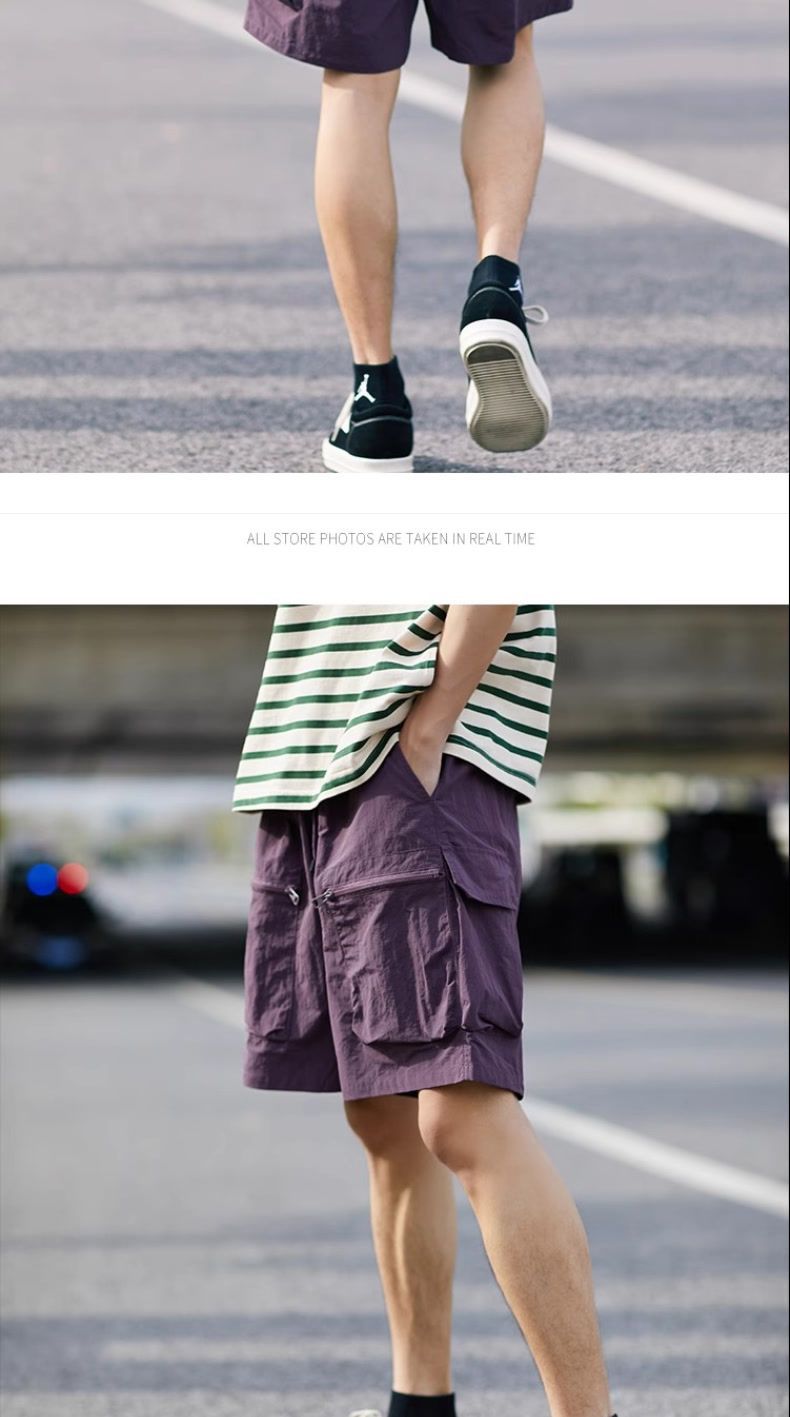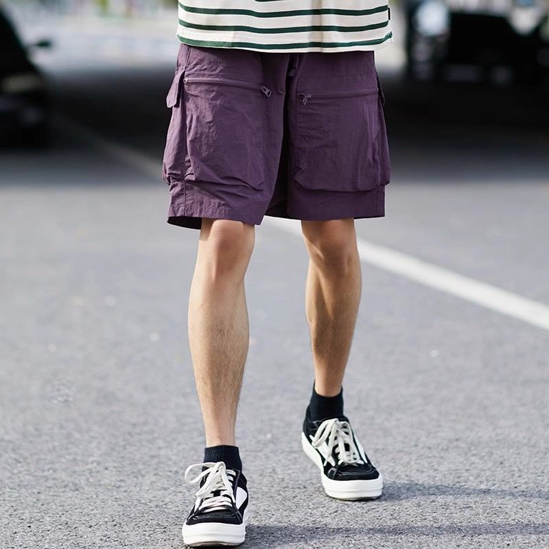 보라색 미국 기능성 툴링 반바지 남성 여름 대형 포켓 지퍼 Russ 틈새 디자인 느슨한 반바지스토어 가기