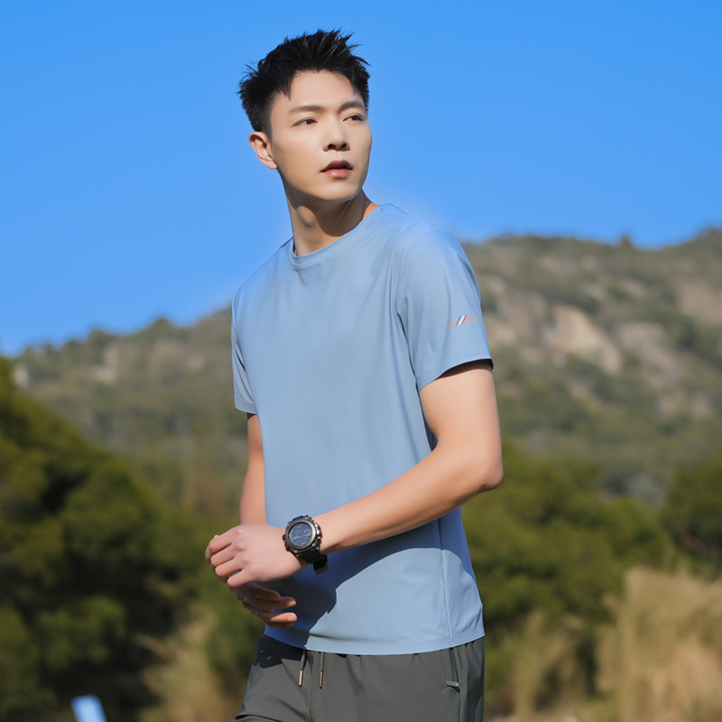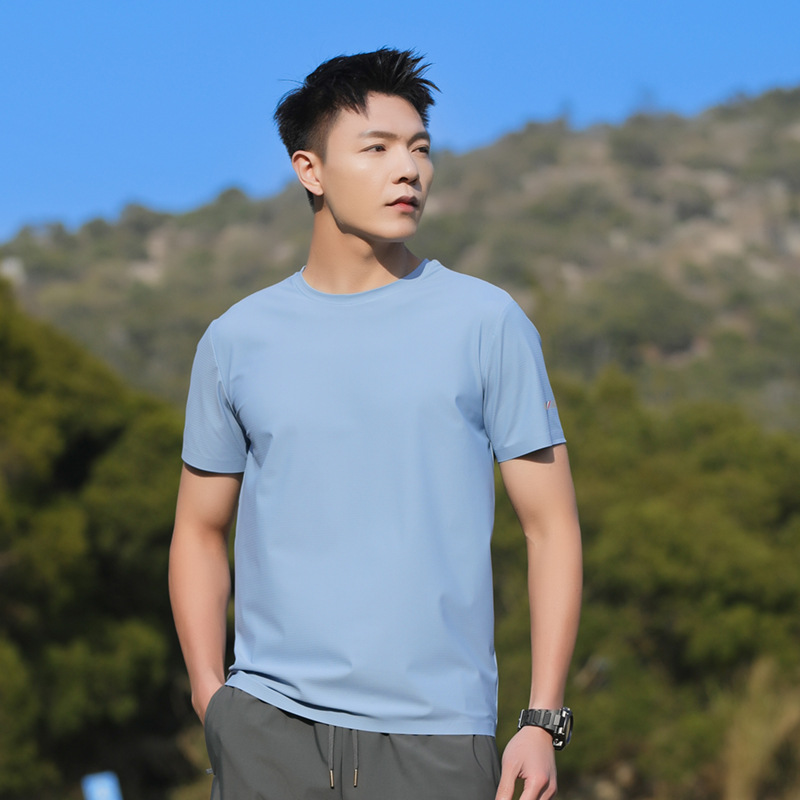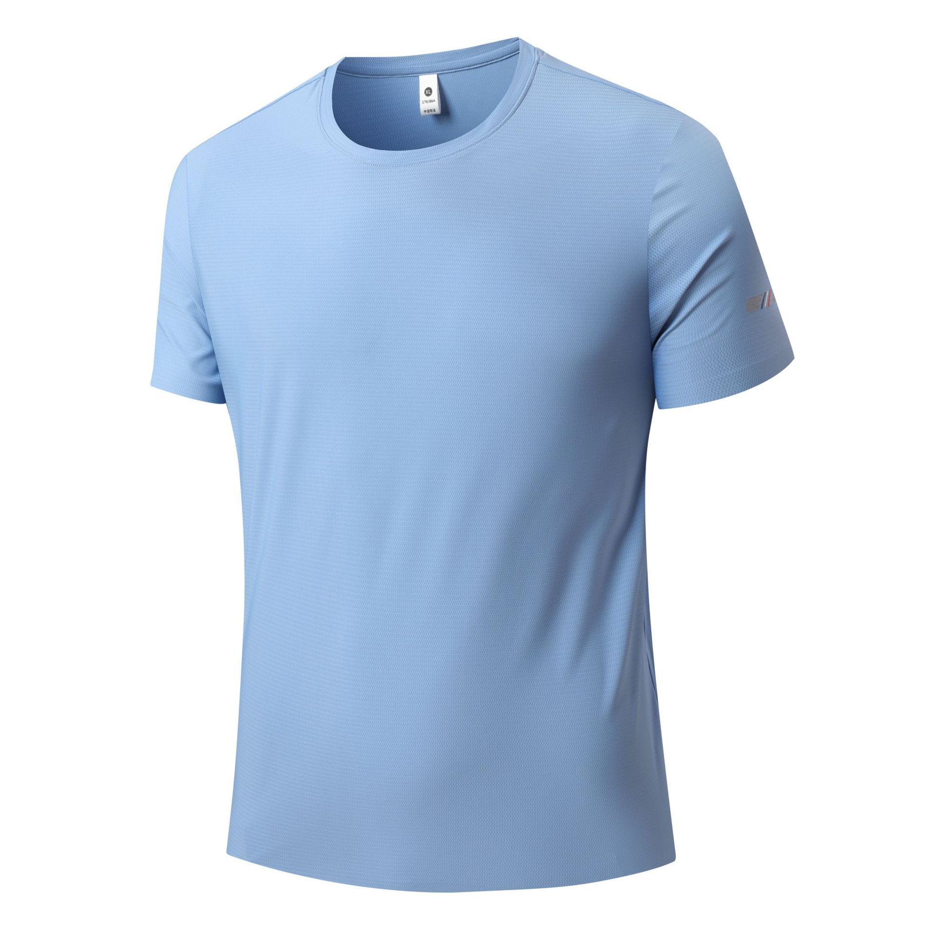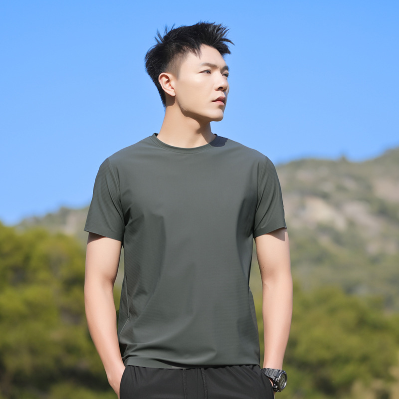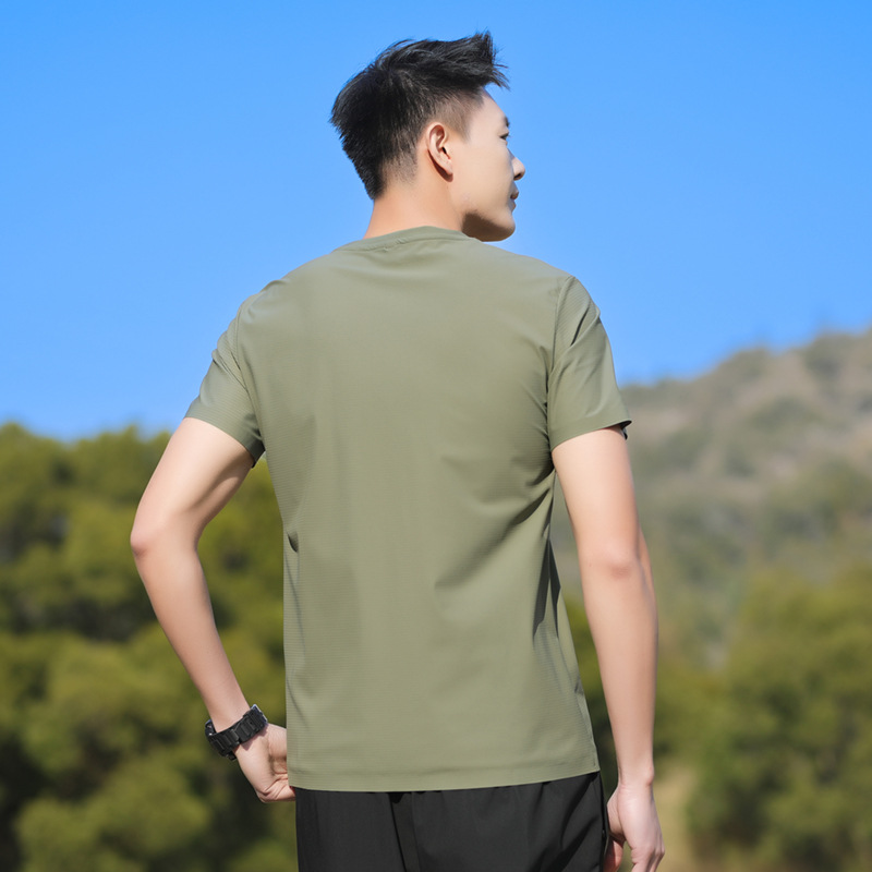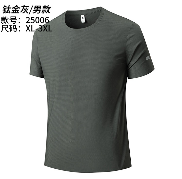 25006 새로운 아이스 실크 트레이스리스 티셔츠 쿨 아이스 실크 빠른 건조 남자 스포츠 반팔 여름 통기성 캐주얼 올 매치