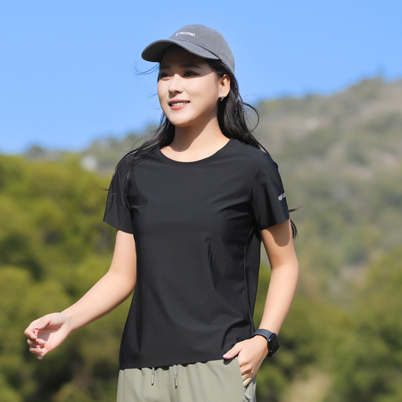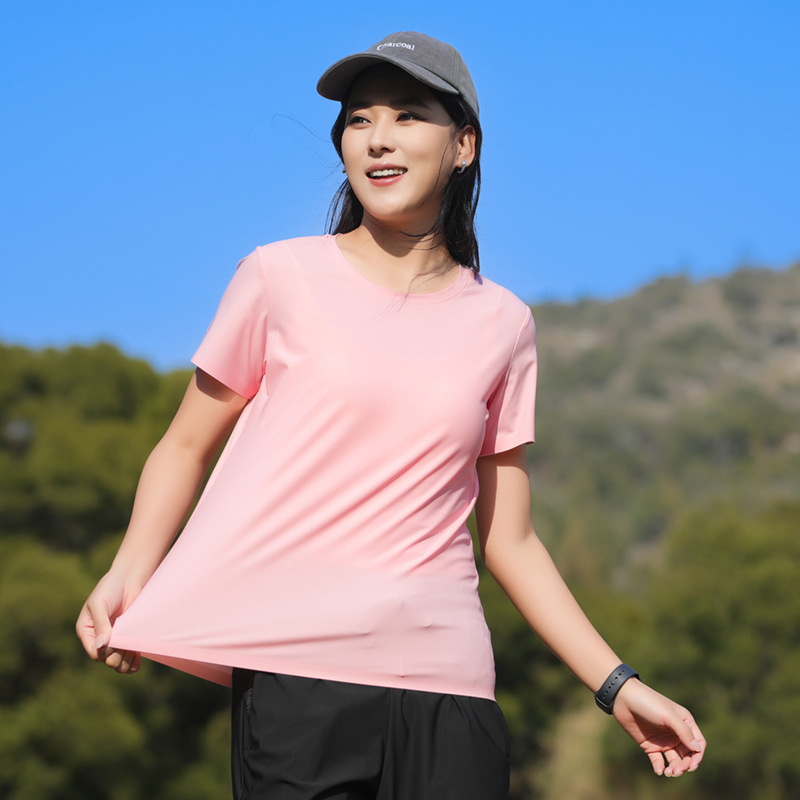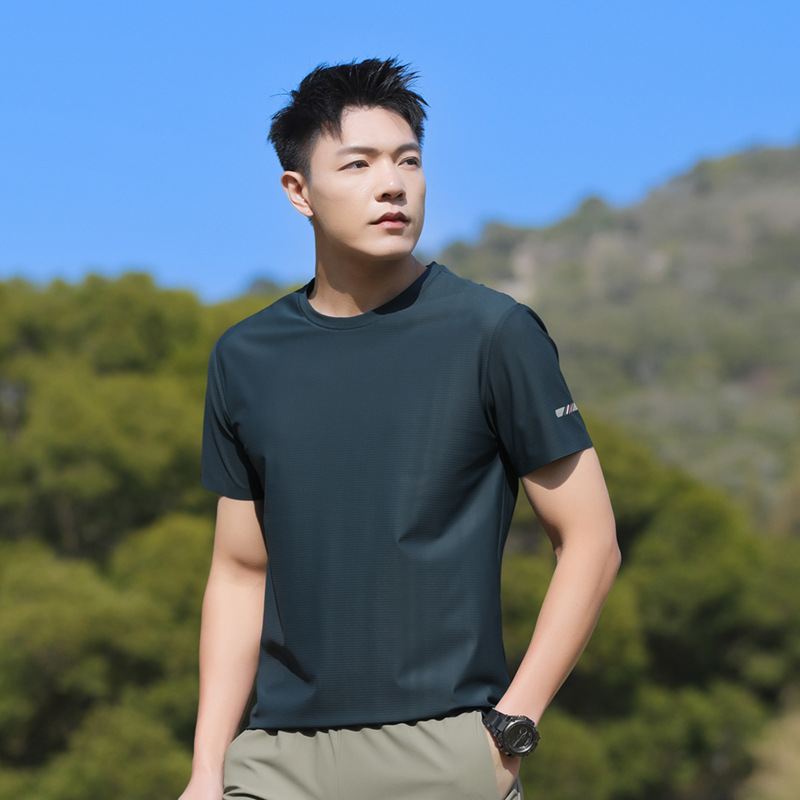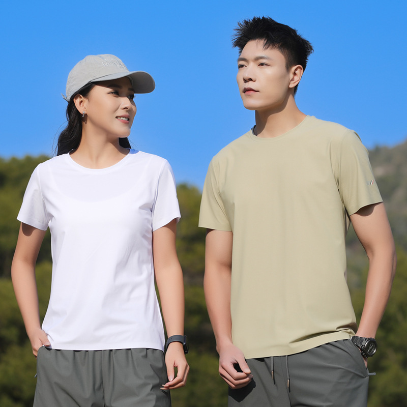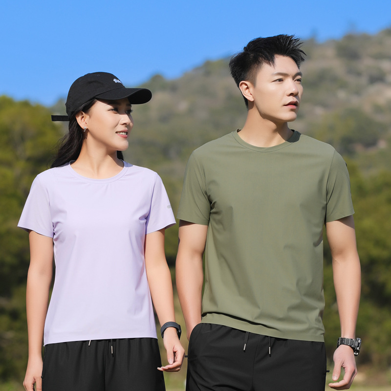 25006 새로운 아이스 실크 트레이스리스 티셔츠 쿨 아이스 실크 빠른 건조 남자 스포츠 반팔 여름 통기성 캐주얼 올 매치스토어 가기