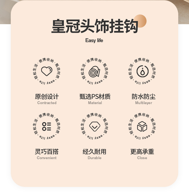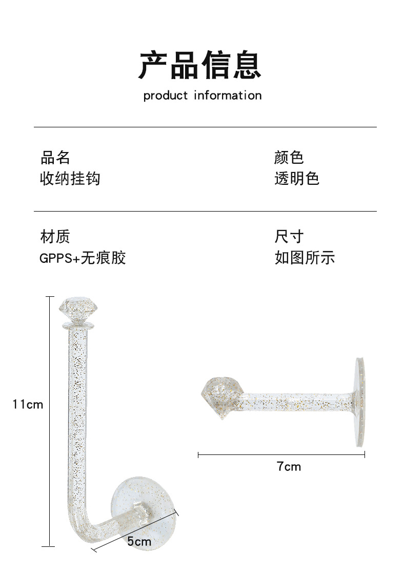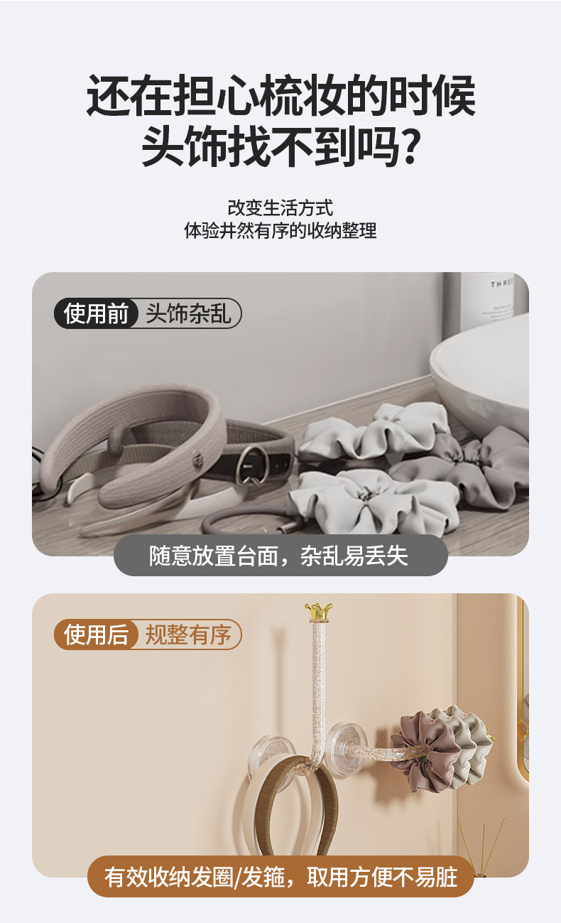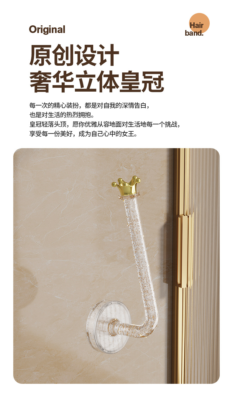 • 商品名称:皇冠可组合挂钩 发圈发箍饰品小物件收纳架-长款(透明杆金冠)