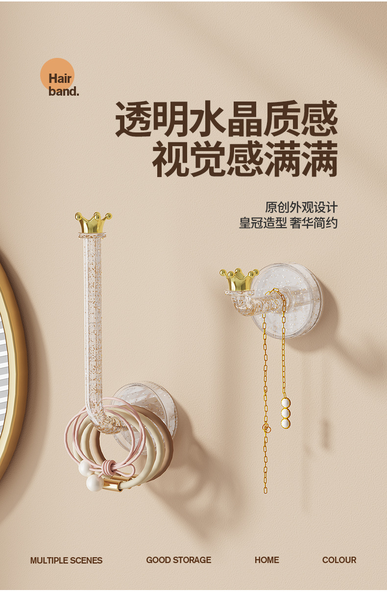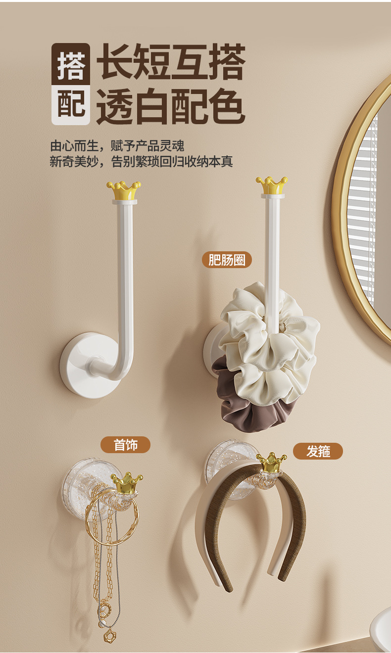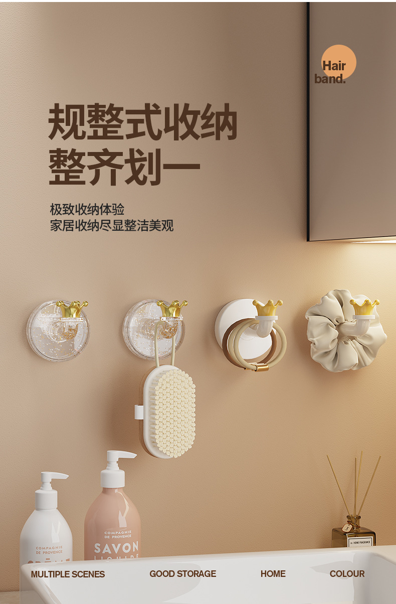 크라운 헤어 링 보관 후크 헤어 액세서리 고무 텐더 헤어 로프 헤어 클립 보관 랙 욕실 원활한 펀치없는 크로스 보더 옷걸이스토어 가기