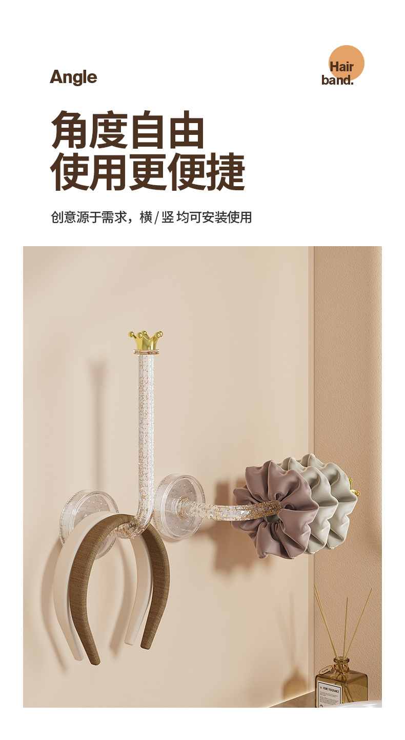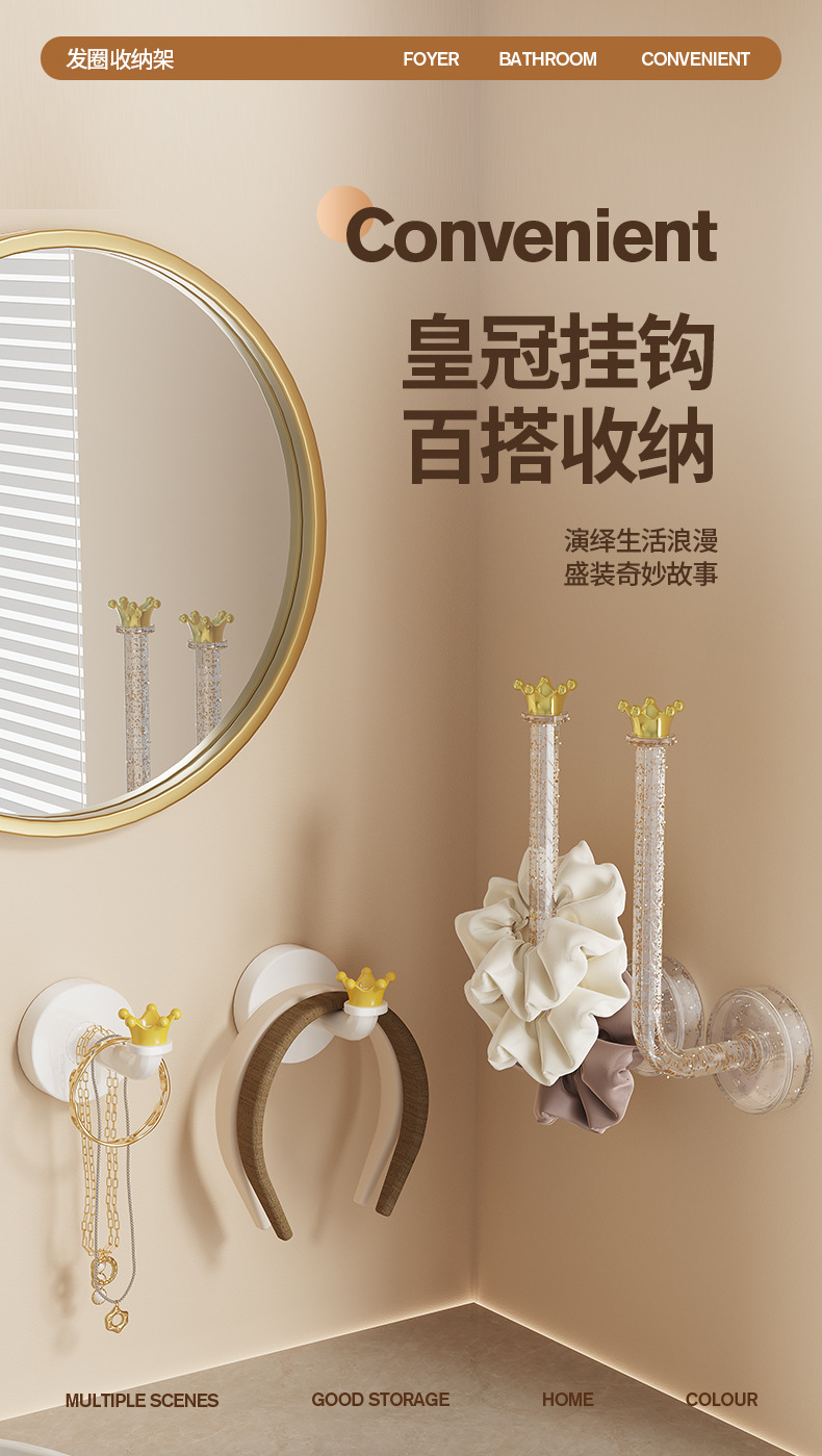 크라운 헤어 링 보관 후크 헤어 액세서리 고무 텐더 헤어 로프 헤어 클립 보관 랙 욕실 원활한 펀치없는 크로스 보더 옷걸이
