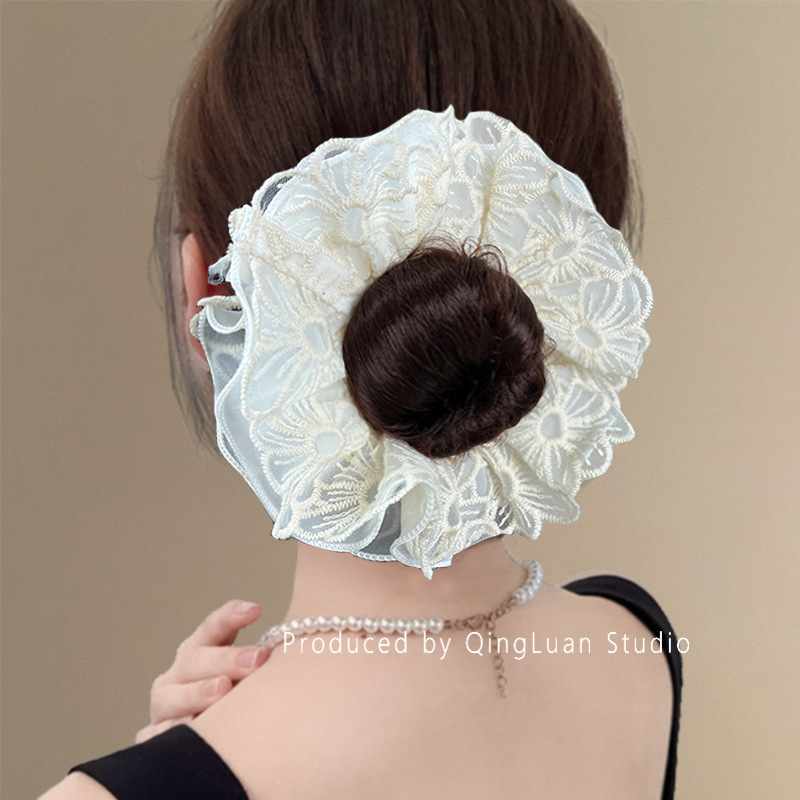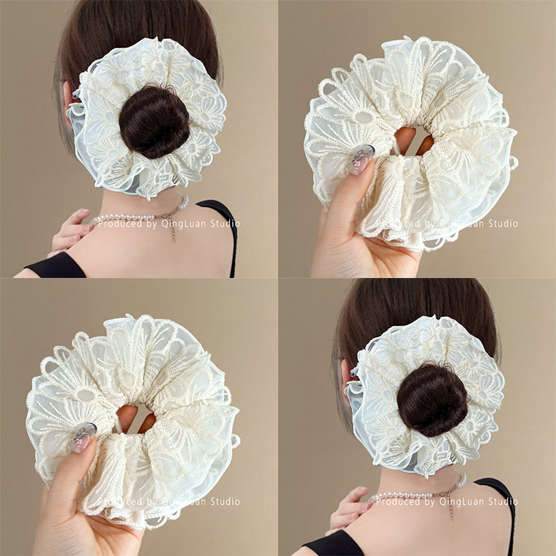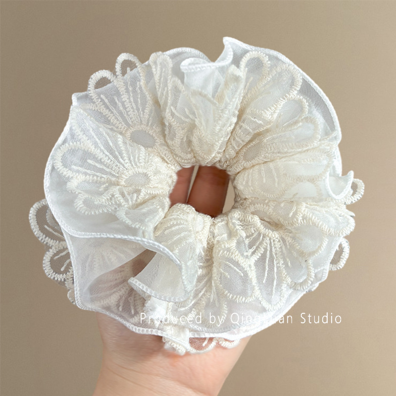 부드러운 ~ 화이트 오간자 꽃 큰 장내 머리 반지 한국 오니 고급 감각 포니 꼬리 머리 밧줄 머리 머리