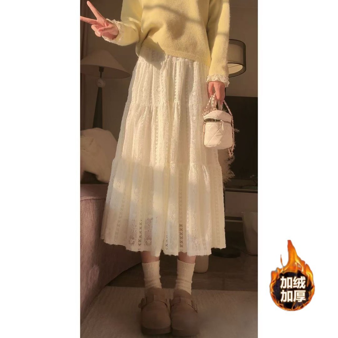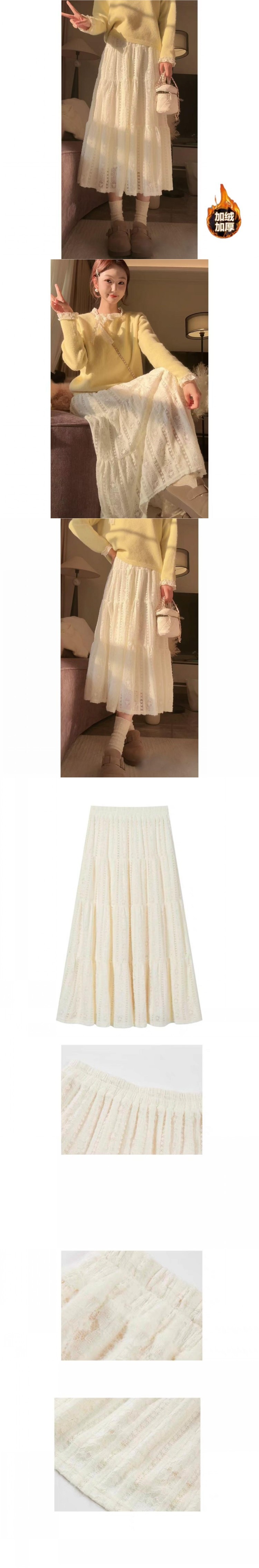 화이트 스플라이스 기질 케이크 스커트 2025년 초봄 신상 슬림 한국식 A라인 롱 스커트 플러스 벨벳 스커트 여성용