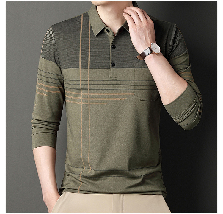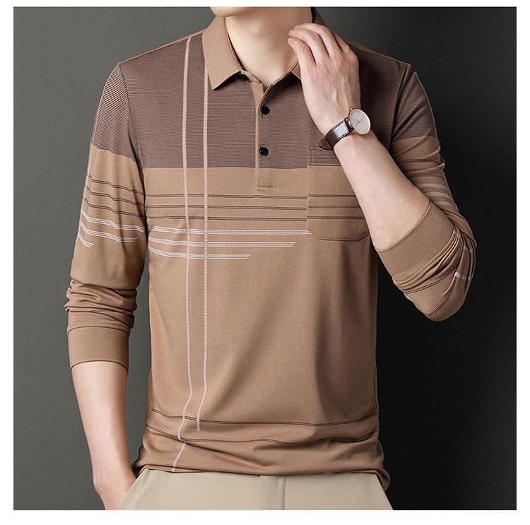 패션 부티크 아빠 긴팔 티셔츠 코튼 중년 아버지 긴팔 티셔츠 남성용 탑-포켓베이스 폴로