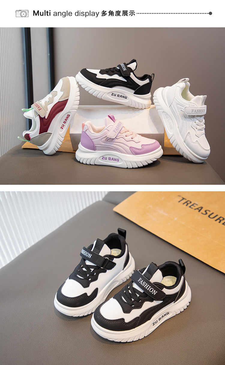 소녀 스포츠 신발 2025 봄과 가을 새로운 어린이 토레 신발 가죽 패널 신발 소년 통기성 캐주얼 러닝 슈즈